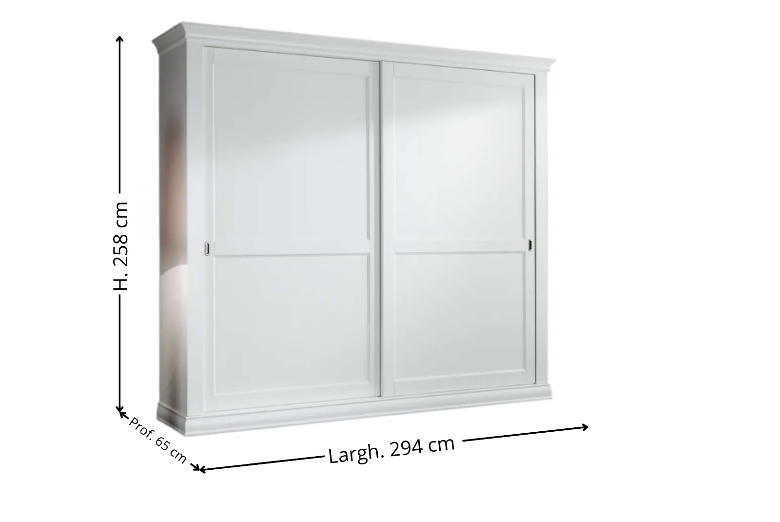 | Dimensioni Armadio 2 ante scorrevoli | Larghezza 294 – Profondità 65 – Altezza 258 cm |