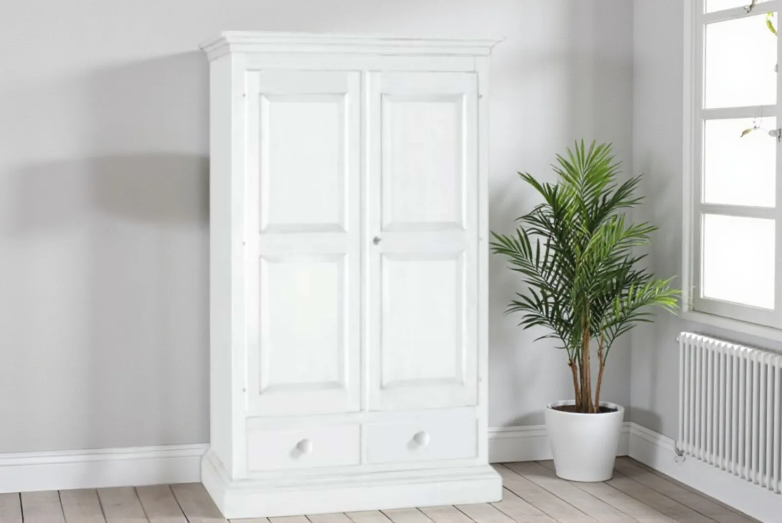 La finitura bianco conferisce un aspetto luminoso e moderno, perfetto per adattarsi a diversi stili di arredamento, dal classico al contemporaneo. Questo armadio non solo arricchisce l’estetica dell’ambiente, ma garantisce anche praticità e ordine.