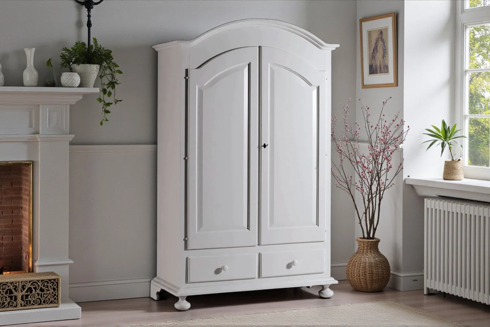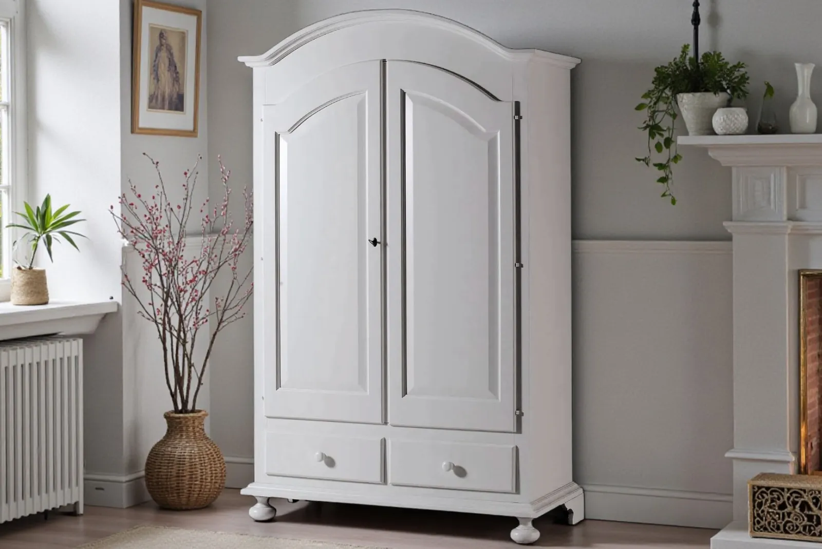 La finitura bianco conferisce un aspetto luminoso e moderno, perfetto per adattarsi a diversi stili di arredamento, dal classico al contemporaneo. Questo armadio non solo arricchisce l’estetica dell’ambiente, ma garantisce anche praticità e ordine.