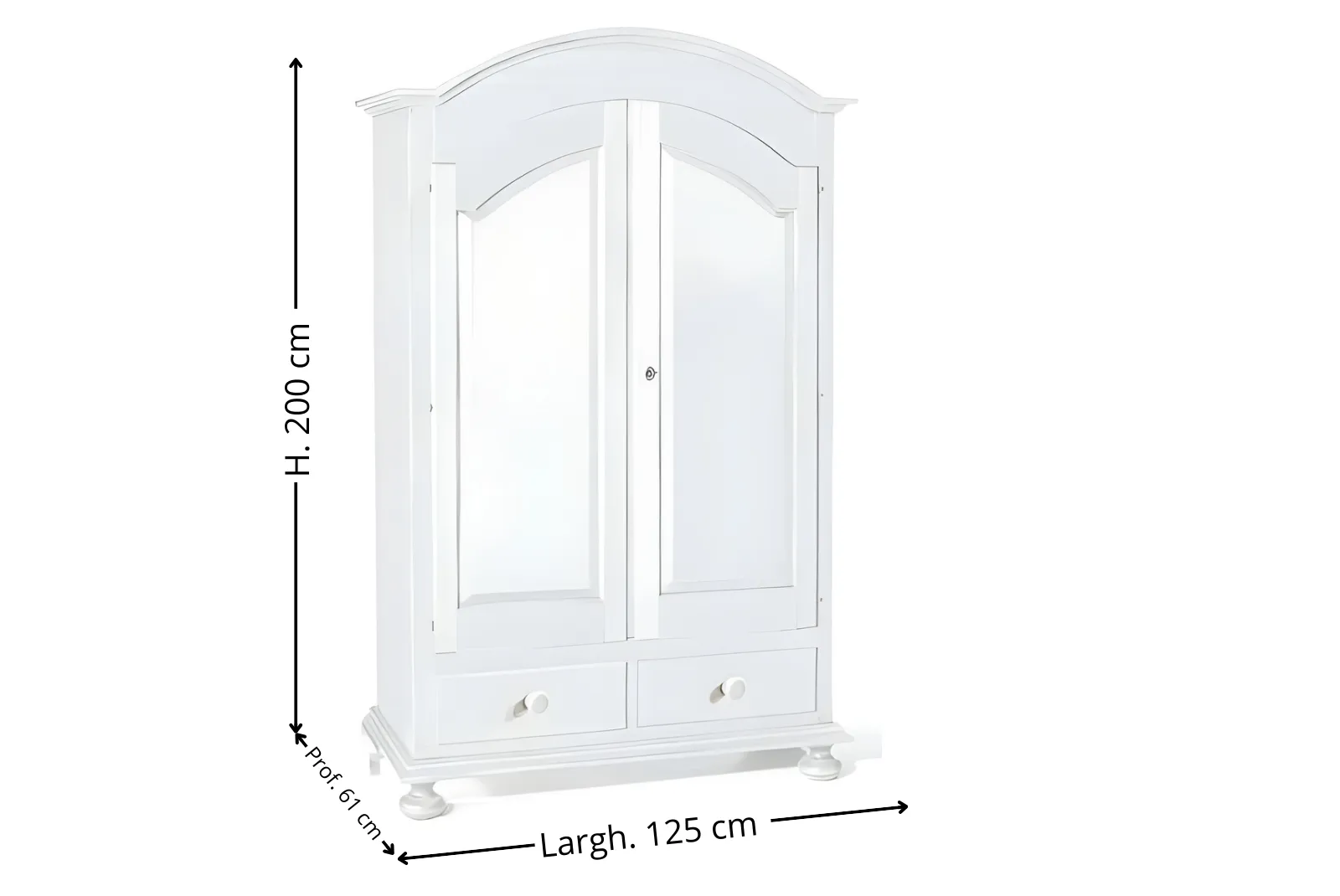 | Dimensioni Armadio | Larghezza 125 – Profondità 61 – Altezza 200 cm |