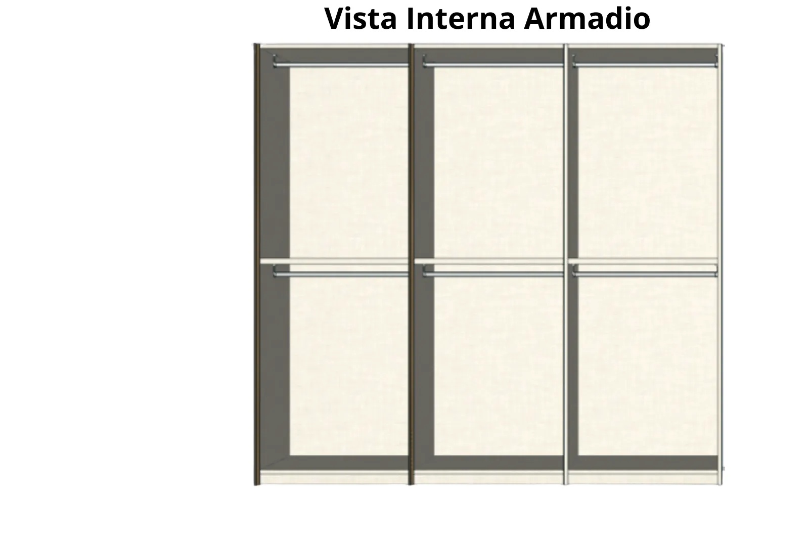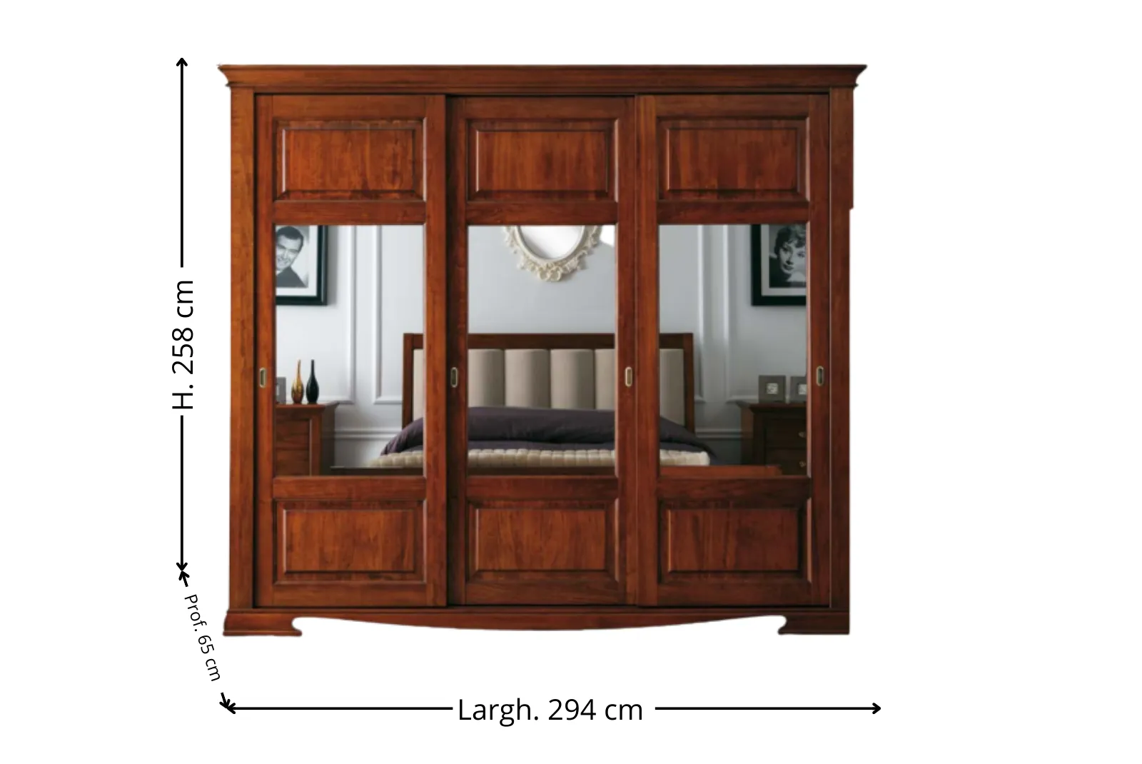 | Dimensione Armadio 3 ante scorrevole | Larghezza 294 – Profondità 65 – Altezza 258 cm |