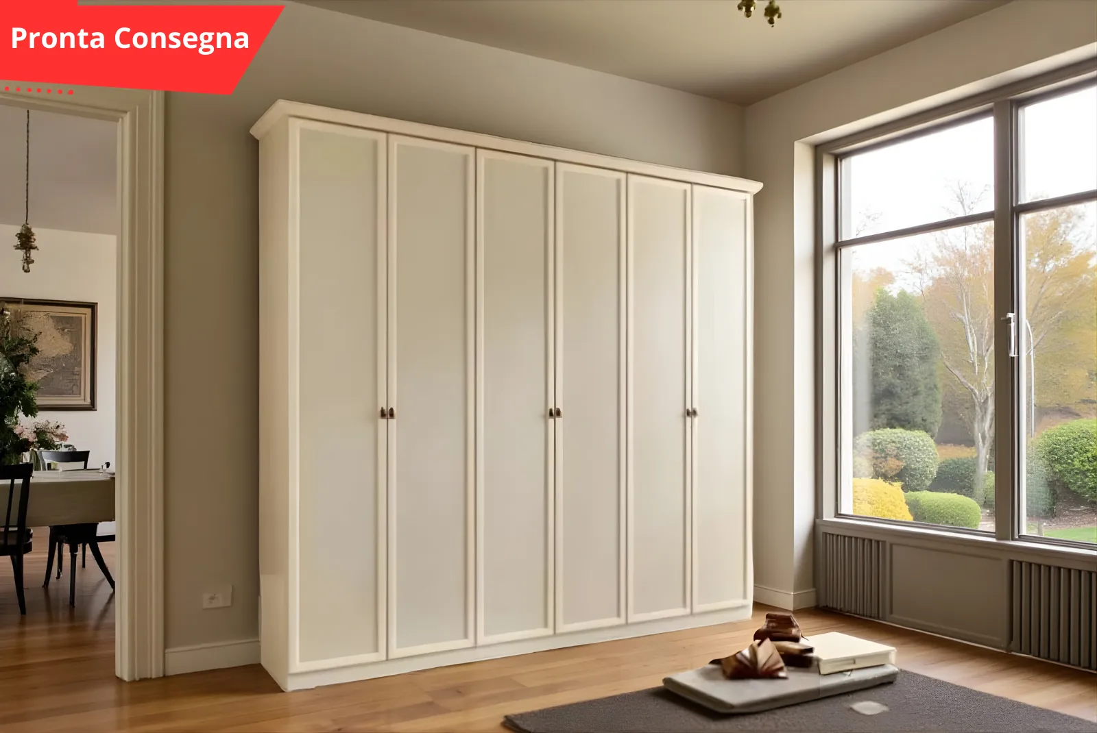 Dona ordine e stile alla tua camera da letto con il nostro Armadio Avorio 5A “Pronta Consegna” ! Questo armadio è la soluzione perfetta per chi cerca un complemento d’arredo capiente, funzionale e versatile.