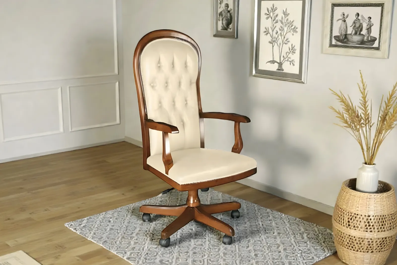 Poltrona in legno girevole con meccanismo in stile Arte Povera è un connubio perfetto tra tradizione e modernità. Realizzata con materiali naturali e lavorazioni artigianali, è un pezzo unico che porta calore e autenticità in ogni ambiente.