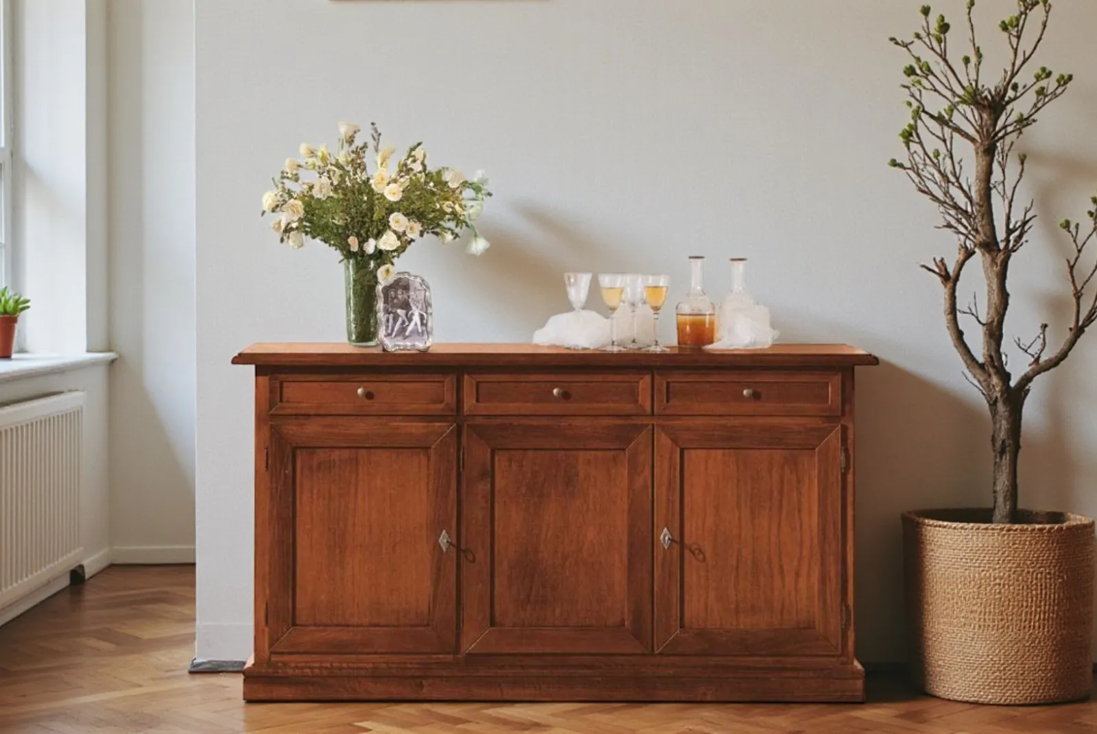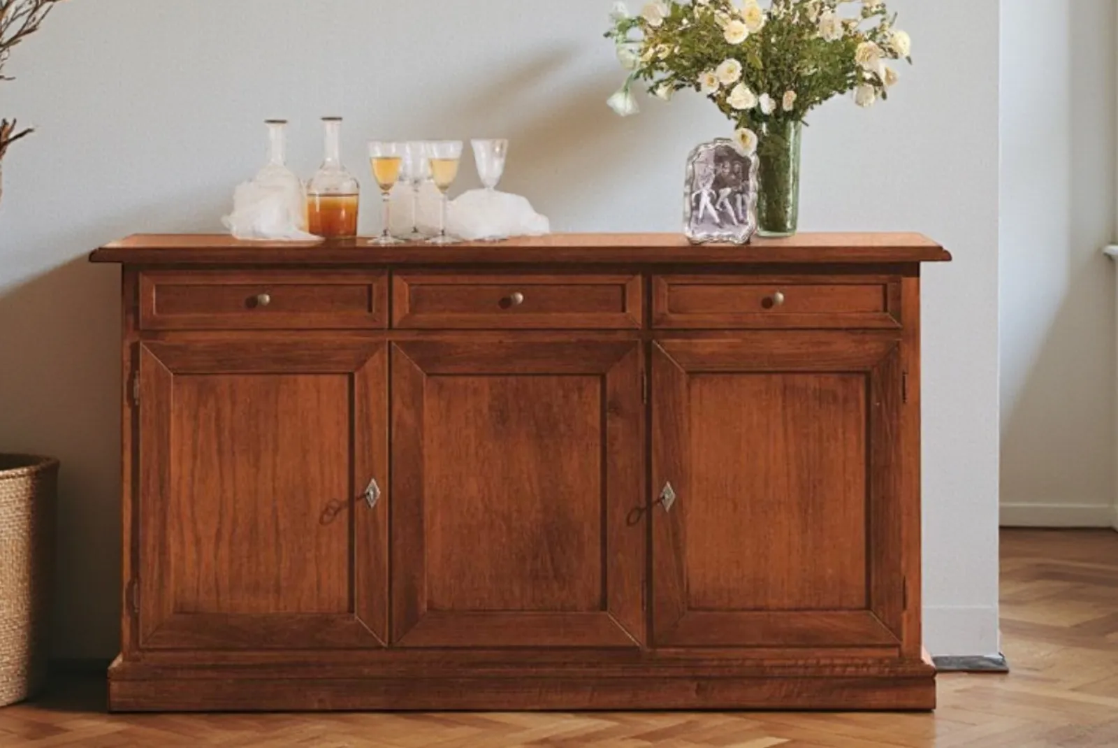 La Credenza 3 porte 3 cassetti L.156 è un elemento d’arredo che unisce funzionalità ed eleganza è ideale per ambienti sia moderni che classici. Realizzata con materiali naturali e lavorazioni artigianali, questa credenza è un pezzo unico che unisce estetica e funzionalità.