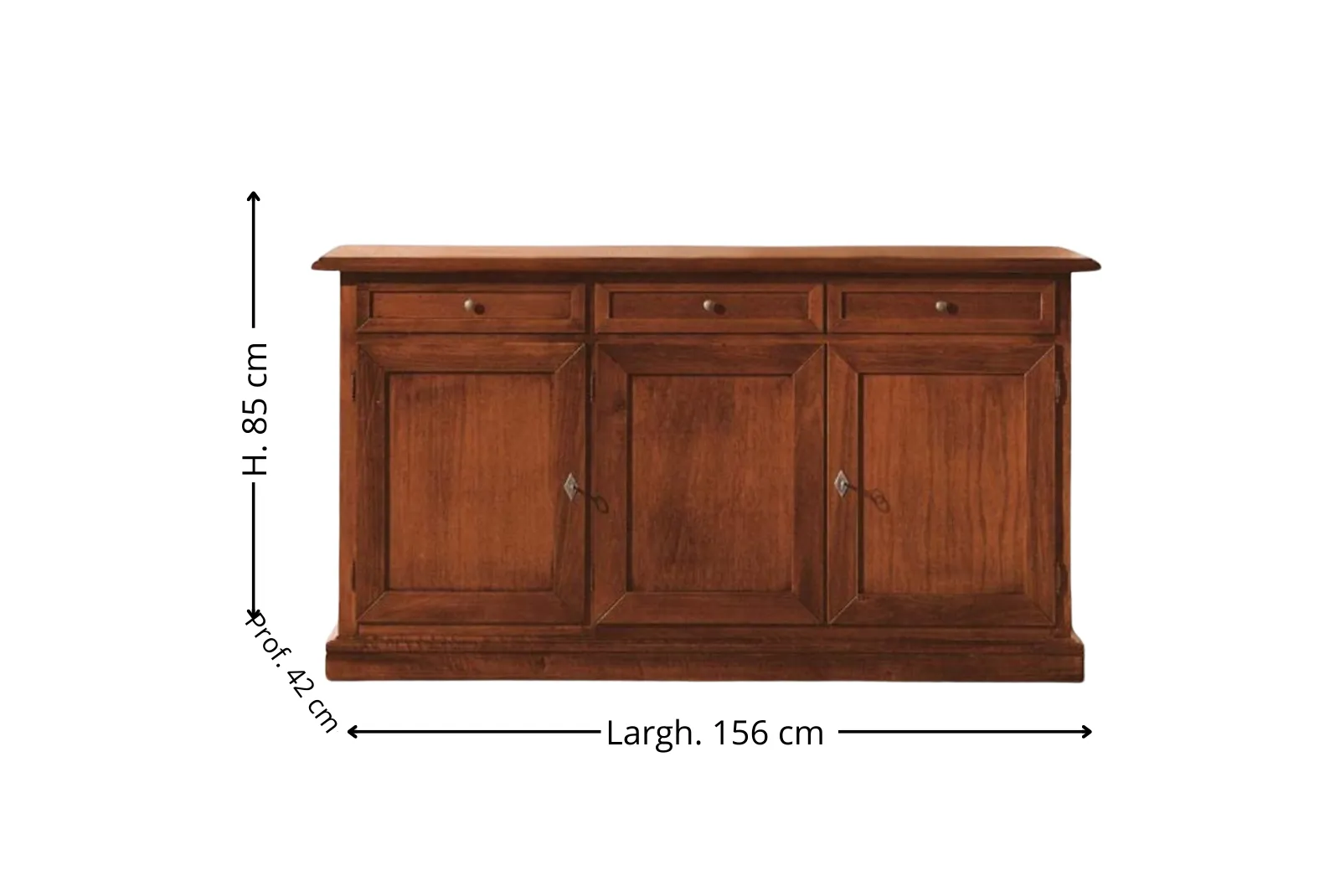 | Dimensioni Credenza | Larghezza 156 – Profondità 42 – Altezza 85 cm |
