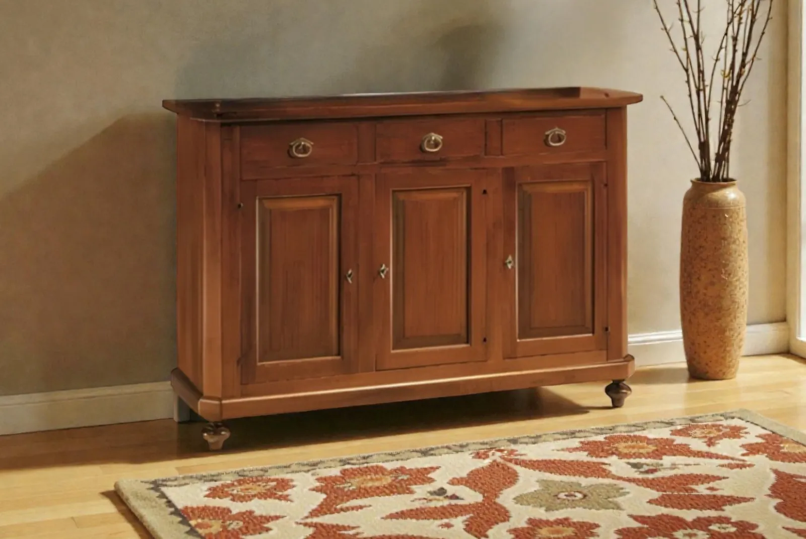 Clicca qui per ulteriori informazioni!La Credenza 3 porte + 3cassetti – Noce in stile arte povera è un elemento d’arredo che unisce funzionalità ed eleganza è ideale per ambienti sia moderni che classici. Realizzata con materiali naturali e lavorazioni artigianali, questa credenza è un pezzo unico che unisce estetica e funzionalità.