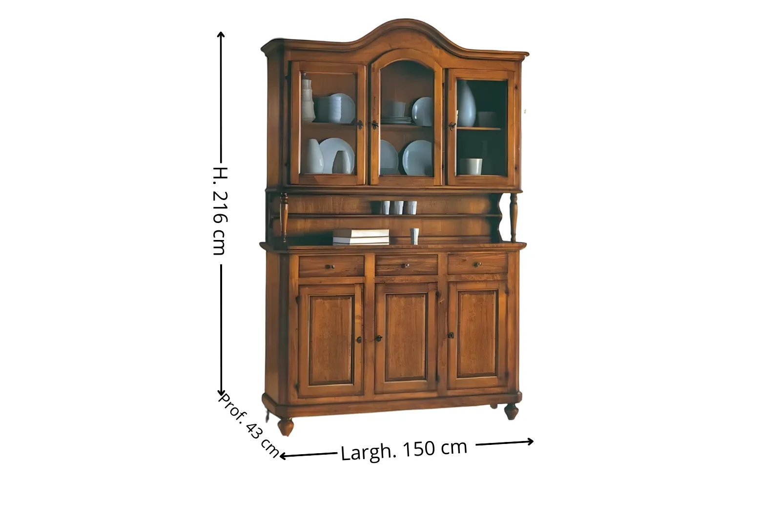 Cristalliera Napoletana 3 p. rappresenta un complemento d’arredo elegante e funzionale si adatta perfettamente a stili d’arredo sia classici che moderni. Questo tipo di mobile è ideale per esporre servizi di piatti, bicchieri e oggetti decorativi grazie alle sue ante in vetro che permettono di mettere in risalto il contenuto.