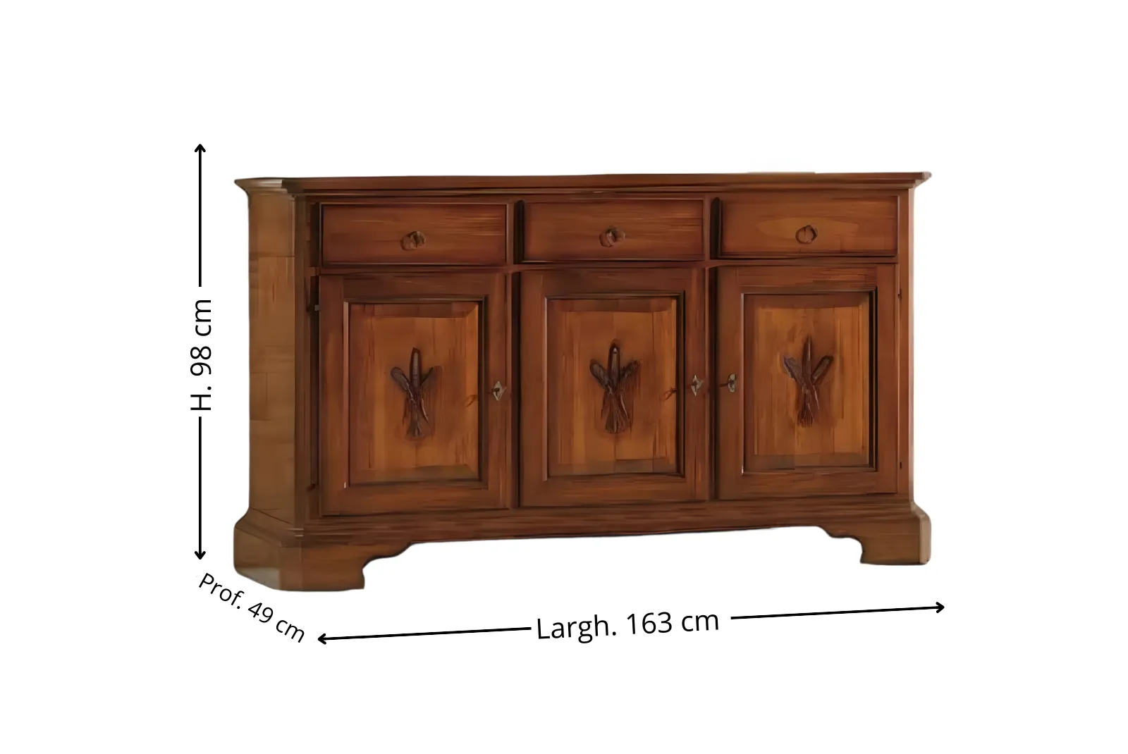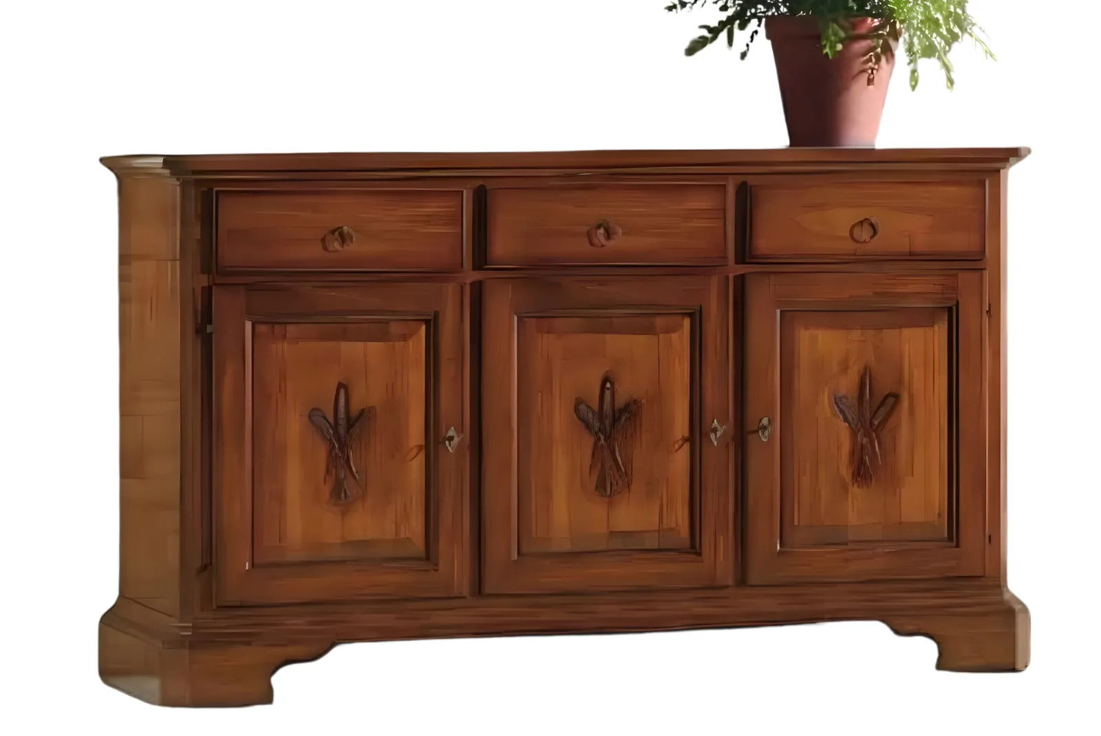 La Credenza 3p. 3c. c/intaglio in stile arte povera è un elemento d’arredo che unisce funzionalità ed eleganza è ideale per ambienti sia moderni che classici. Realizzata con materiali naturali e lavorazioni artigianali, questa credenza è un pezzo unico che unisce estetica e funzionalità.