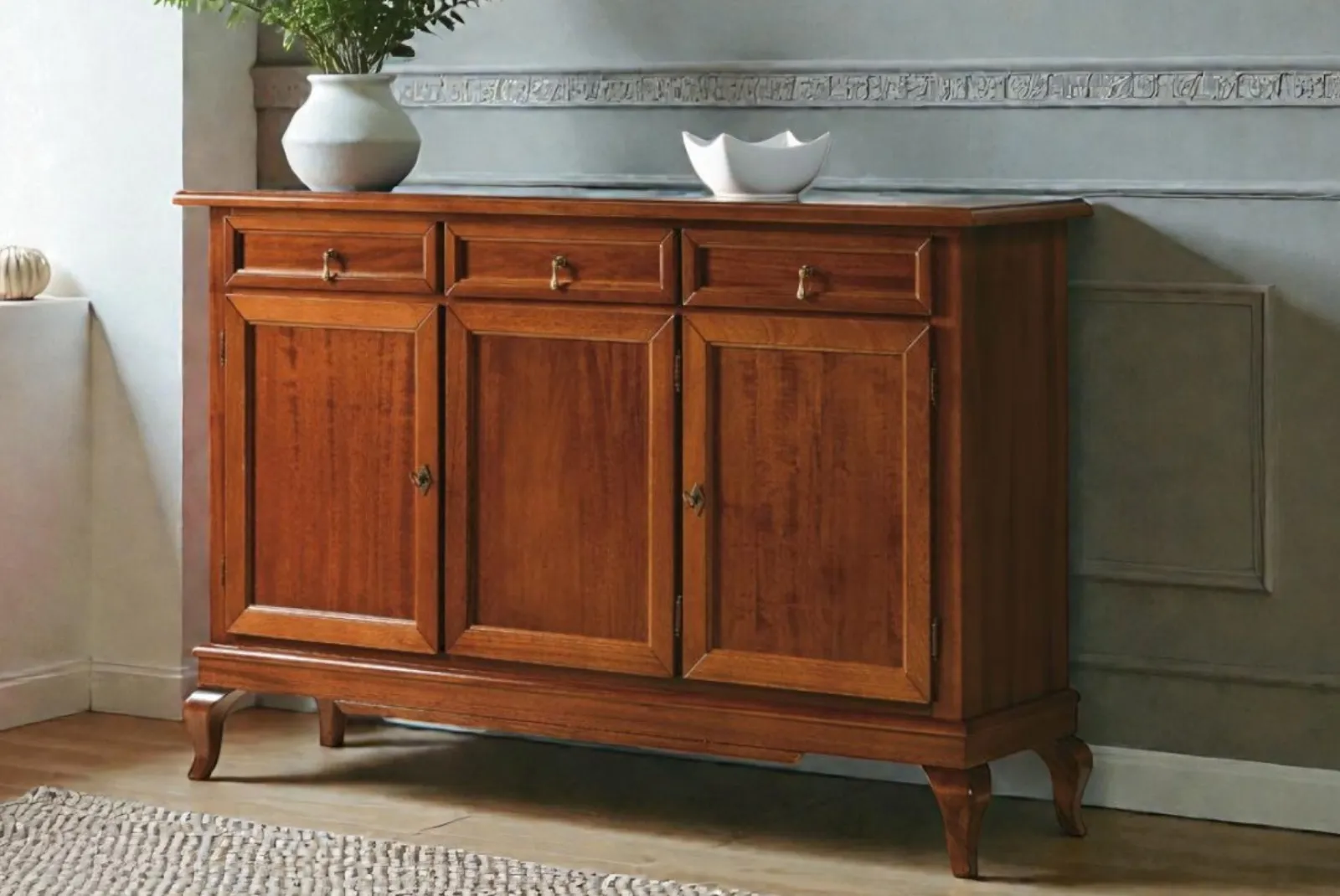 Un tocco di rustico chic per il tuo ambiente. Realizzata con materiali naturali e lavorazioni artigianali, questa credenza è un pezzo unico che unisce estetica e funzionalità.