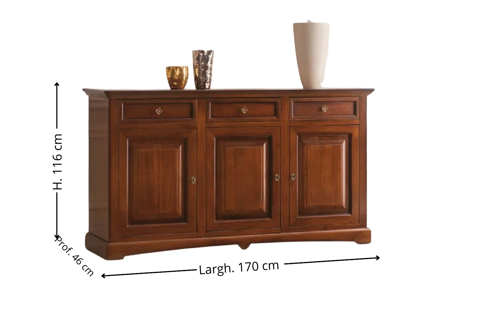 Clicca qui per ulteriori informazioni!Il Credenzone 3porte 3cassetti L.170 è un elemento d’arredo che unisce funzionalità ed eleganza è ideale per ambienti sia moderni che classici. Realizzata con materiali naturali e lavorazioni artigianali, questa credenza è un pezzo unico che unisce estetica e funzionalità.