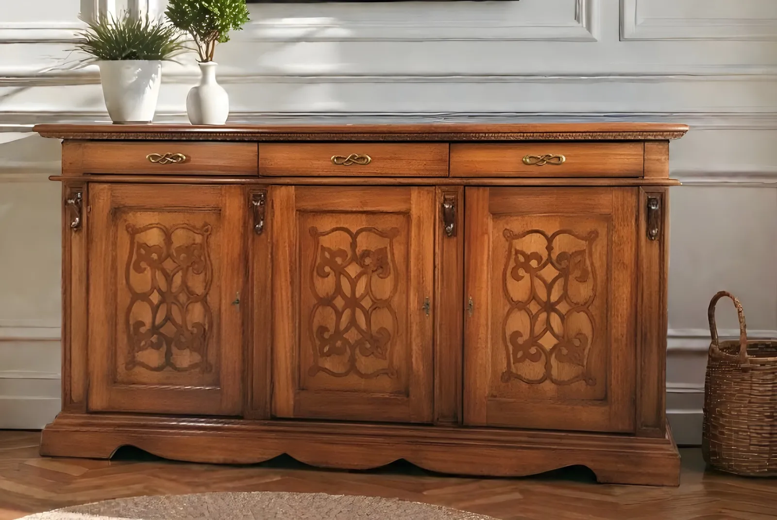 La Credenza 3 porte 3 cassetti – L.230 in stile arte povera è un elemento d’arredo che unisce funzionalità ed eleganza è ideale per ambienti sia moderni che classici. Realizzata con materiali naturali e lavorazioni artigianali, questa credenza è un pezzo unico che unisce estetica e funzionalità.