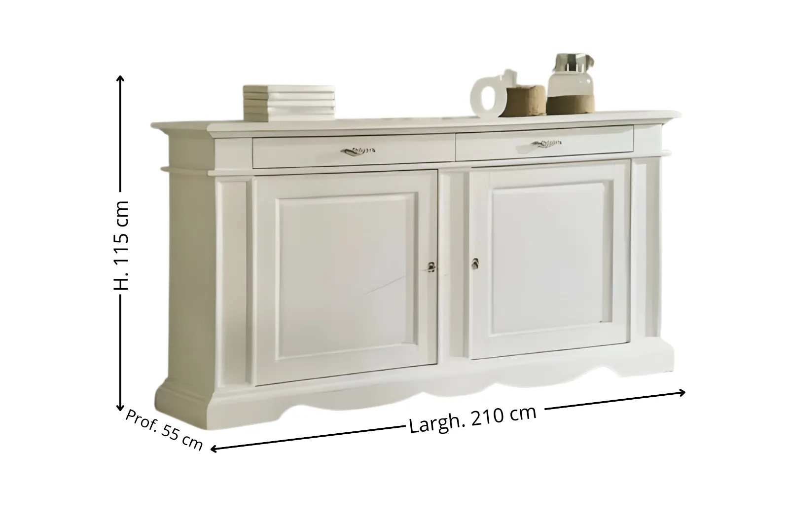 | Dimensioni Credenza | Larghezza 210 – Profondità 55 – Altezza 115 cm |