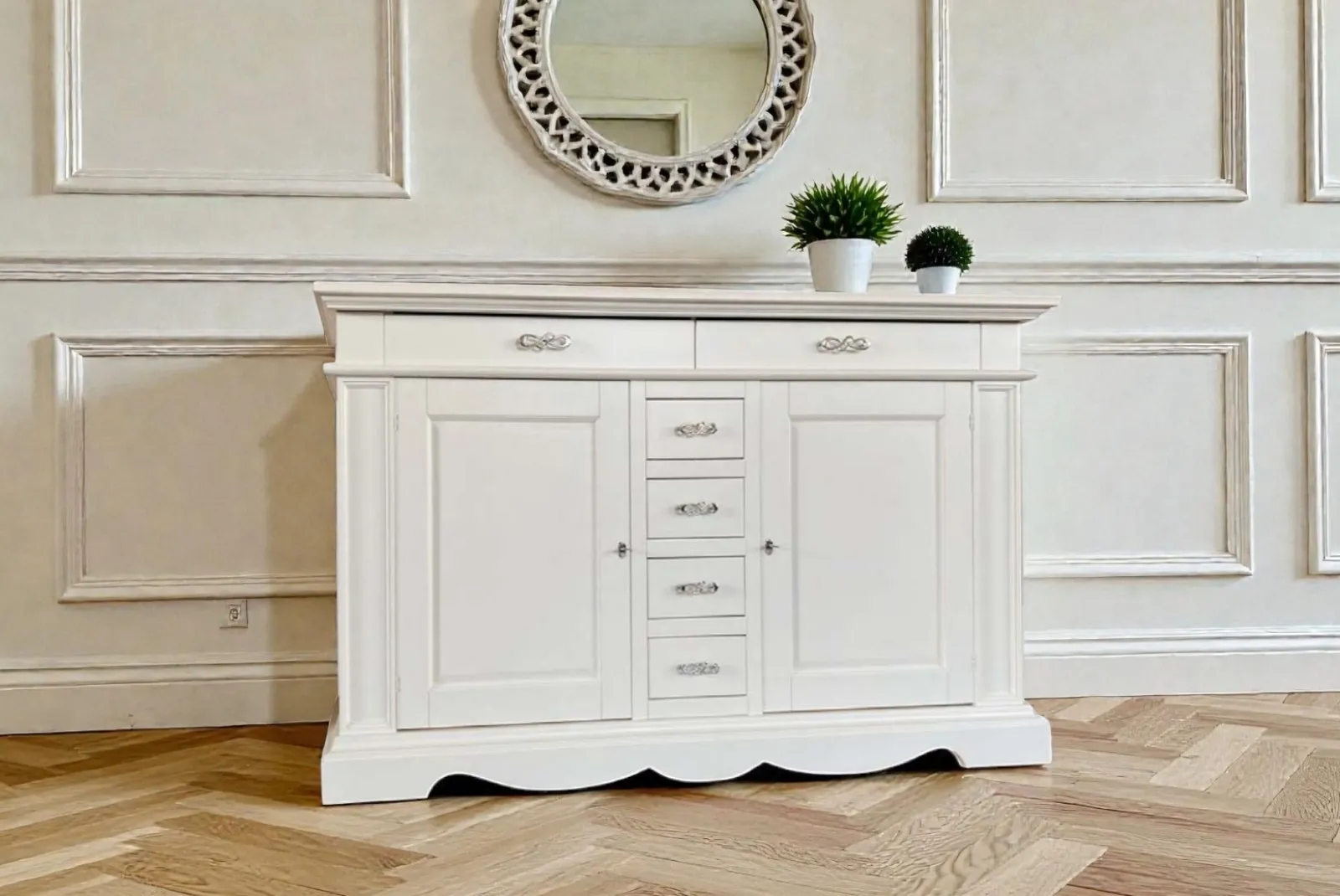 La Credenza – Bianco 6cassetti 2ante in stile Arte Povera è un elemento d’arredo che unisce funzionalità ed eleganza è ideale per ambienti sia  moderni che classici. Realizzata con materiali naturali e lavorazioni artigianali, questa credenza è un pezzo unico che unisce estetica e funzionalità.