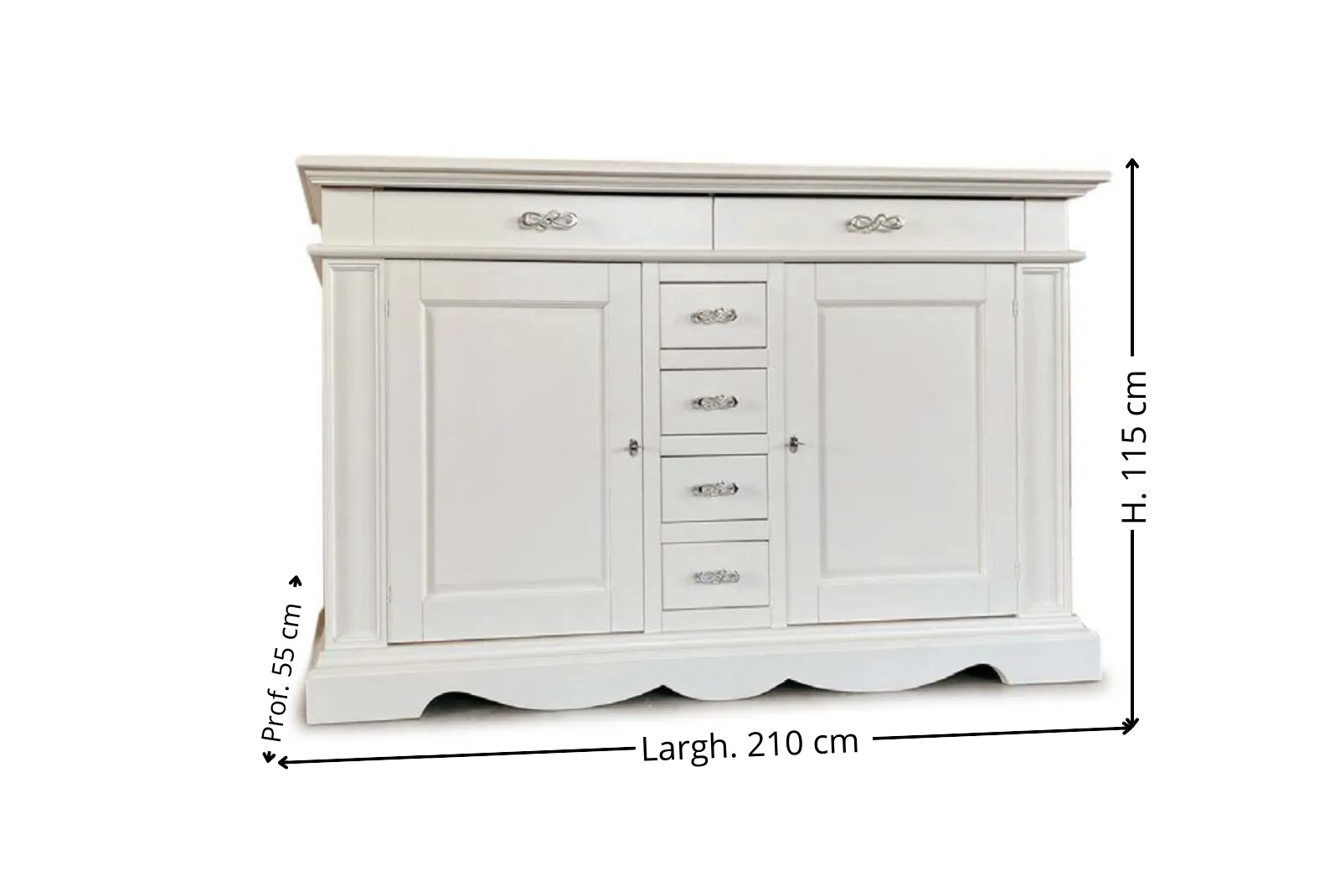 Larghezza 210 – Profondità 55 – Altezza 115 cm