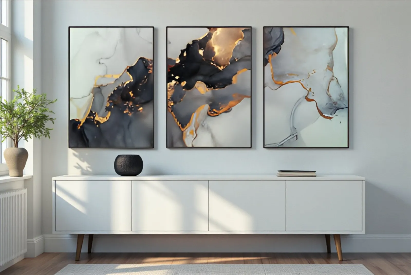 - 📦 Il Quadro Arte fluida Black – Trilogia in vetro viene spedito imballato e montato su pallet per garantire massima protezione durante il trasporto.