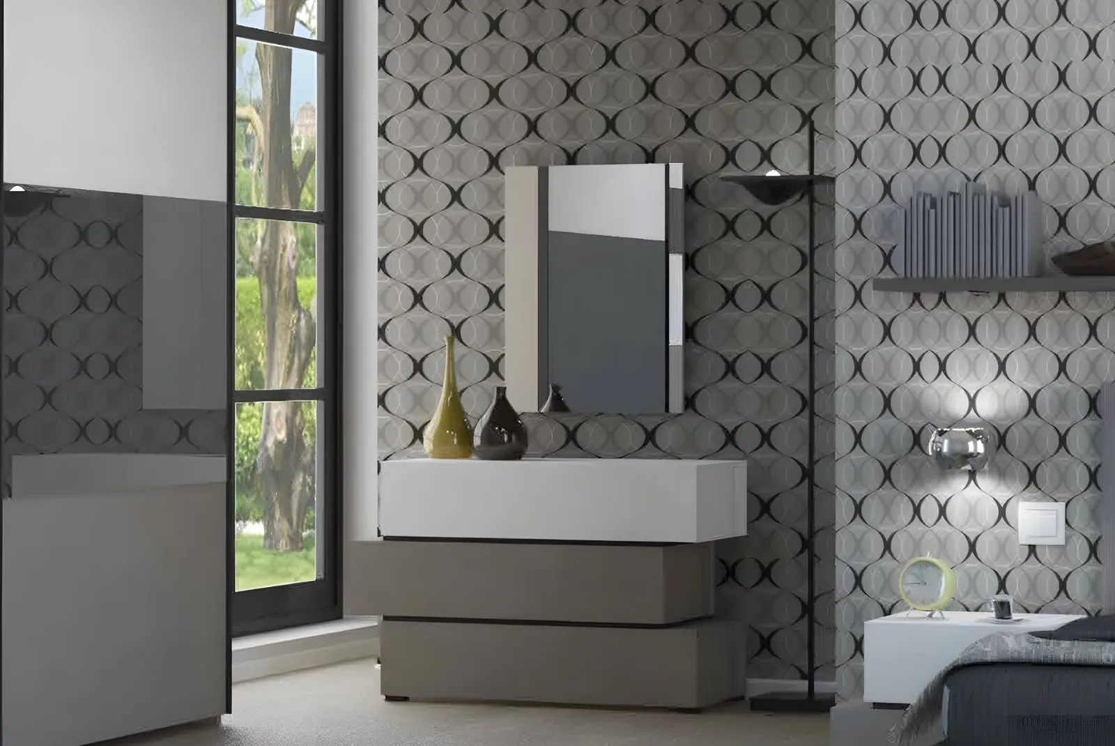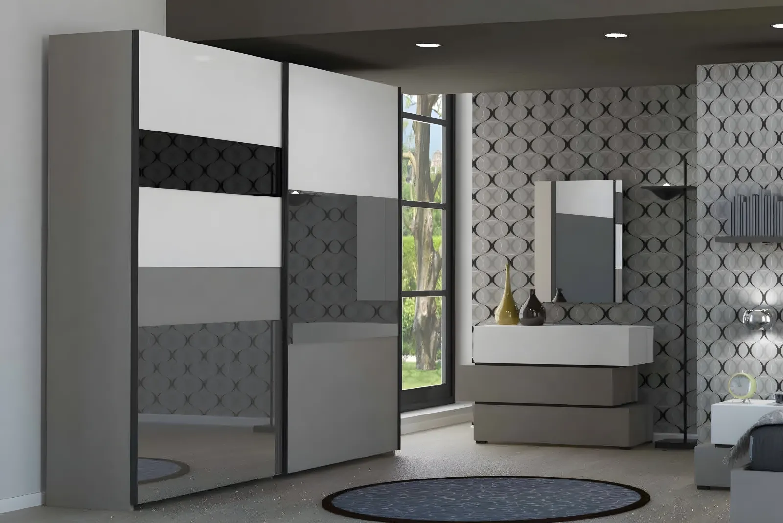 - Struttura: Tortora/bianco – Mix di specchi fumè e argentati