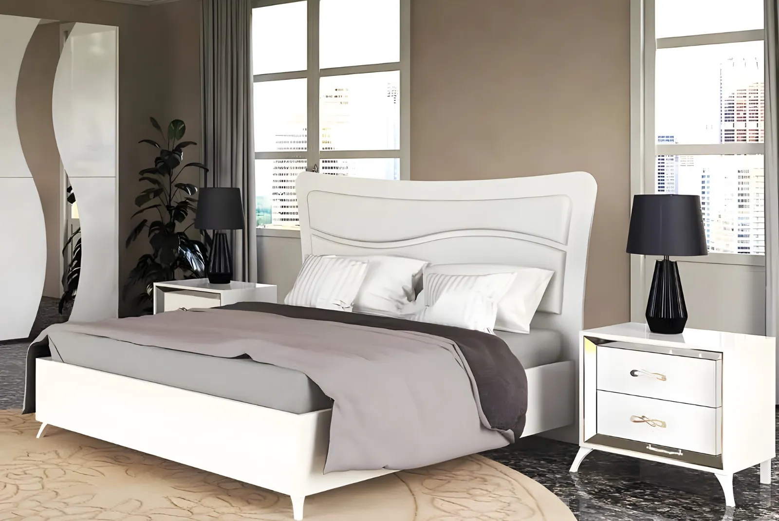 La camera  letto con contenitore Emily non solo offre funzionalità, ma si distingue anche per il suo design elegante e contemporaneo. Ideale per sfruttare al meglio la luce naturale, il suo design permette di creare un’atmosfera calda e accogliente nella tua stanza.