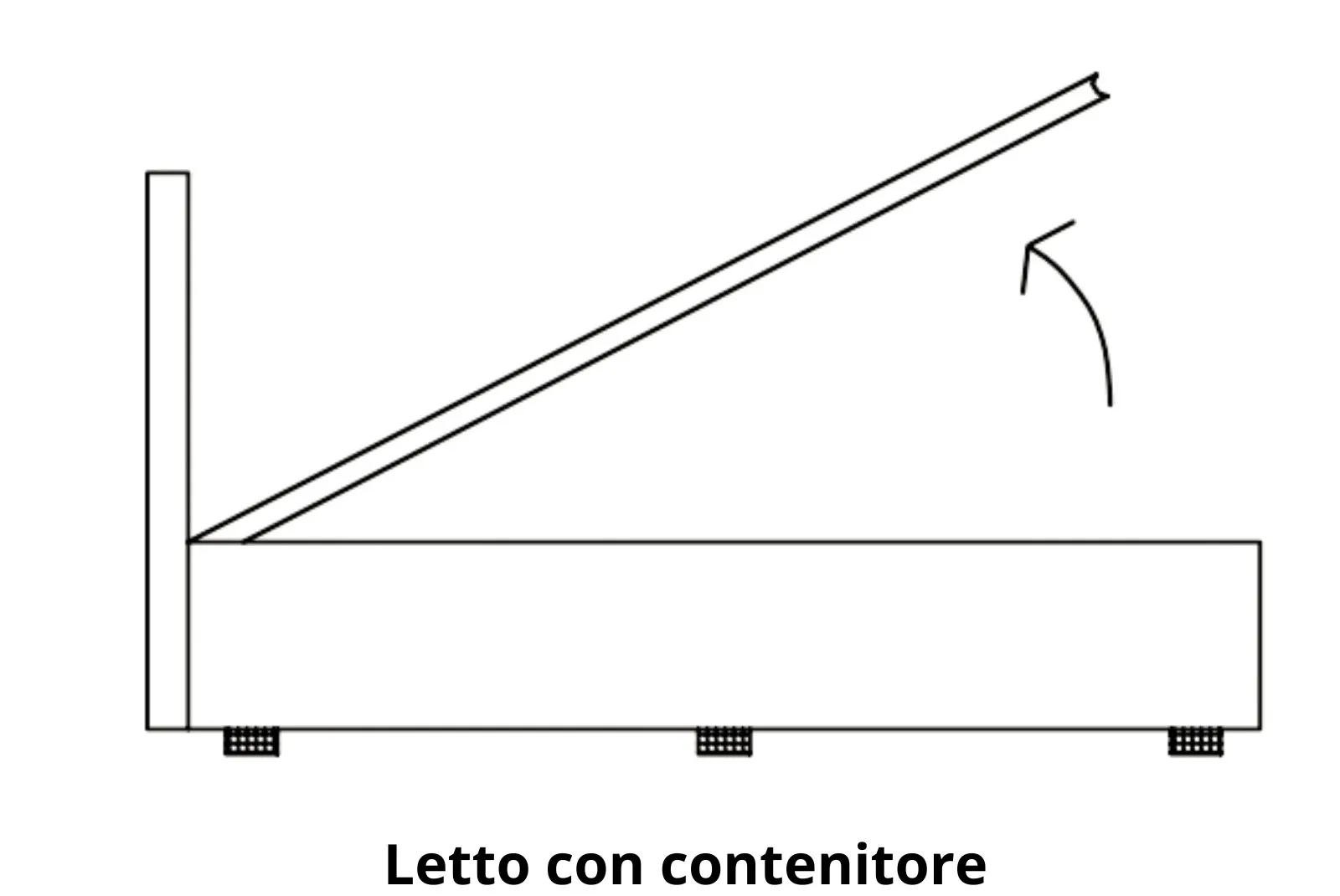 - Letto matrimoniale con contenitore: Larghezza 196 – Profondità 210 – Altezza 152 cm
