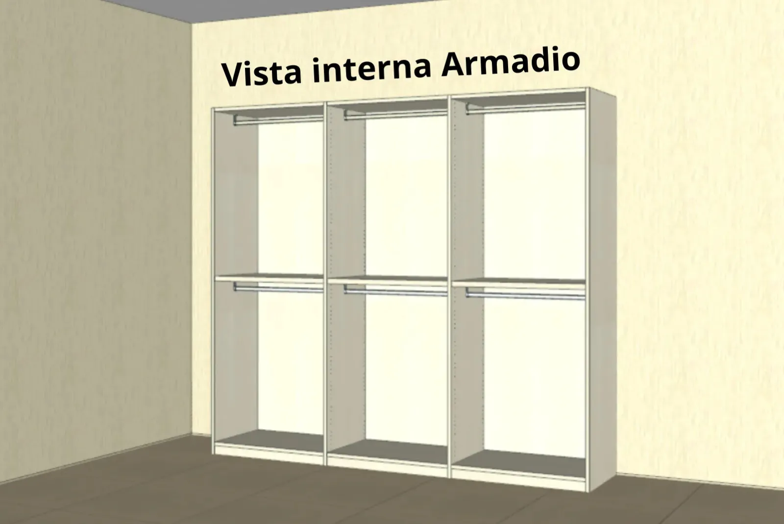 - Armadio: L 284 cm – H 250 cm – P 62,2 cm 6 Ante: Battenti