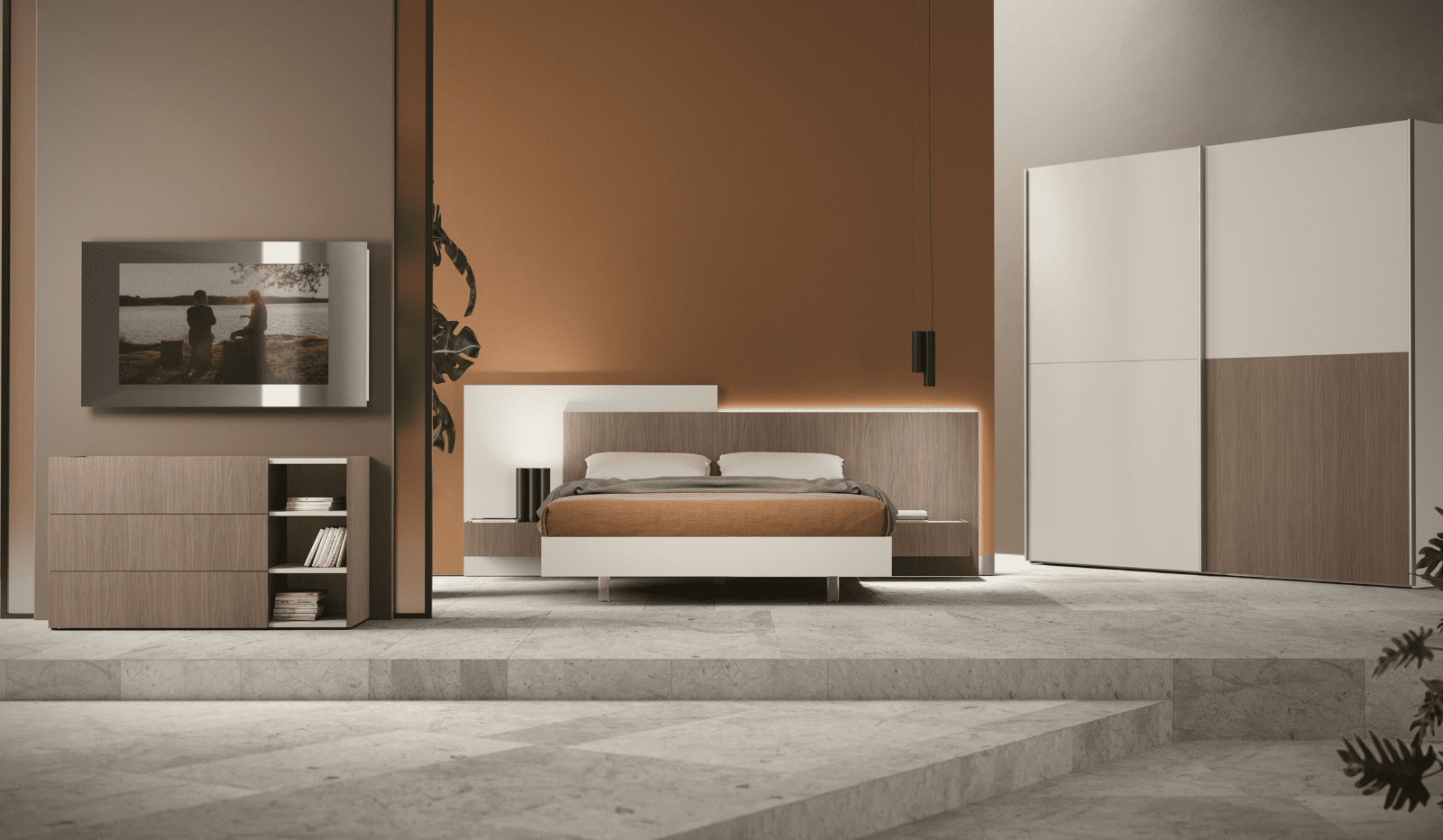 La camera letto Modello Spazio 02 è la scelta ideale per chi desidera una combinazione di stile moderno e comfort senza compromessi. Con le sue caratteristiche di design avanzato e i materiali di alta qualità, questo modello trasforma la camera da letto in un rifugio di tranquillità e bellezza.