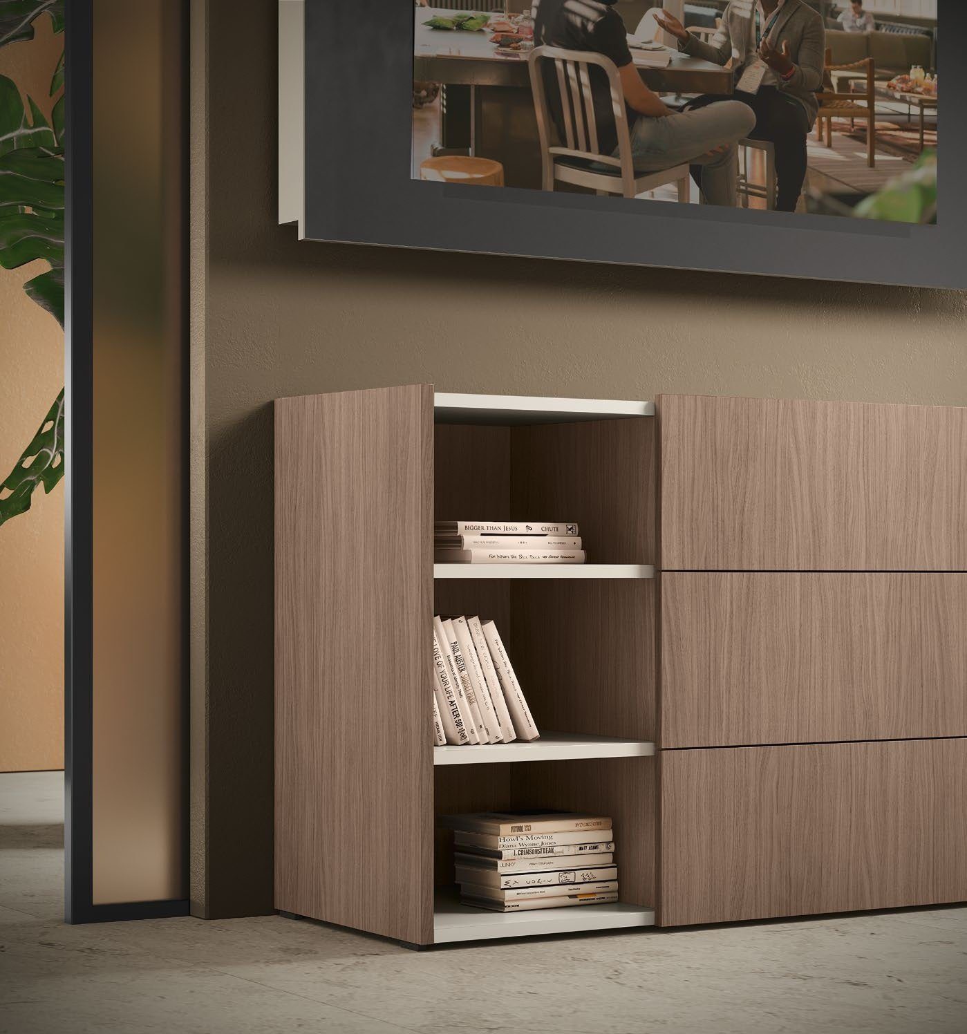 - 01 Comò: Spazio – nobilitato grigio e noce