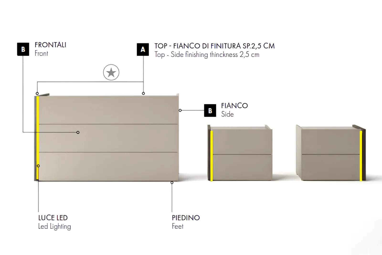 - Comodini: L.57,8 – Prof.45,1 – H.46,8