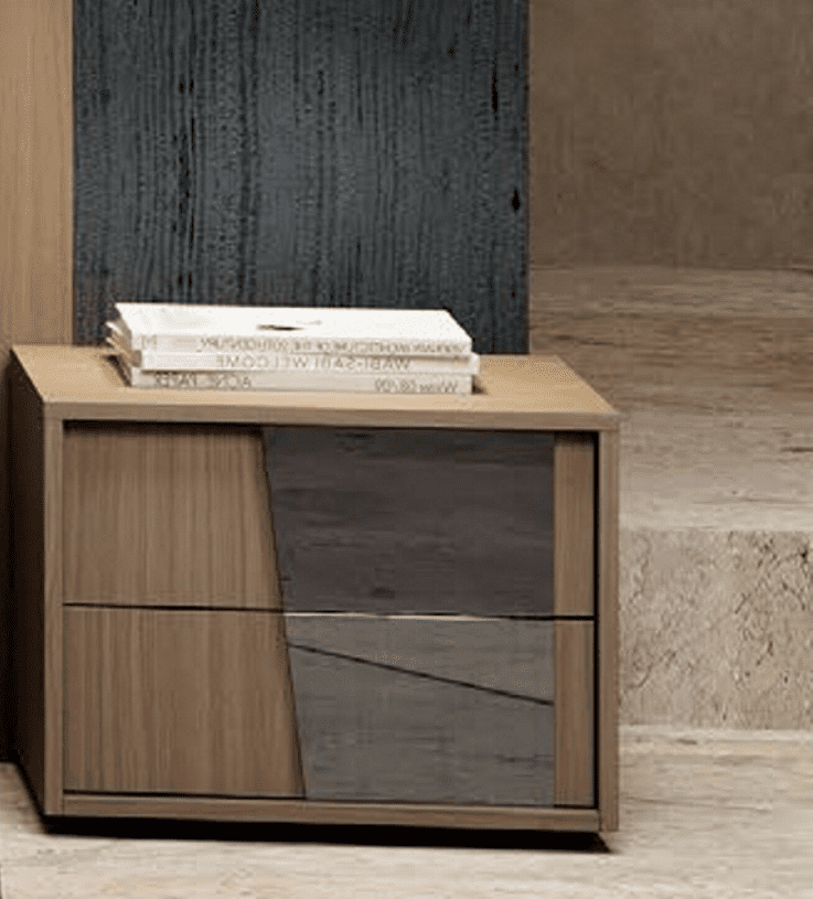 - 02 Comodini: Tango – nobilitato noce e maniglia specchio fumé
