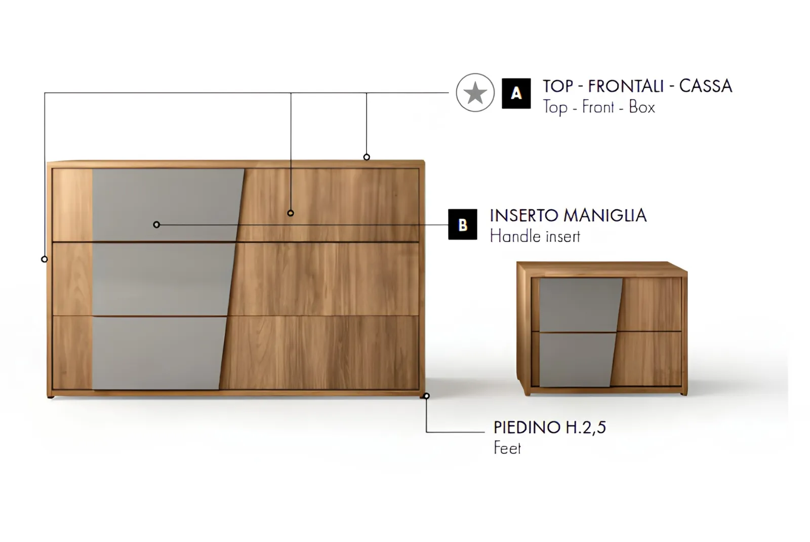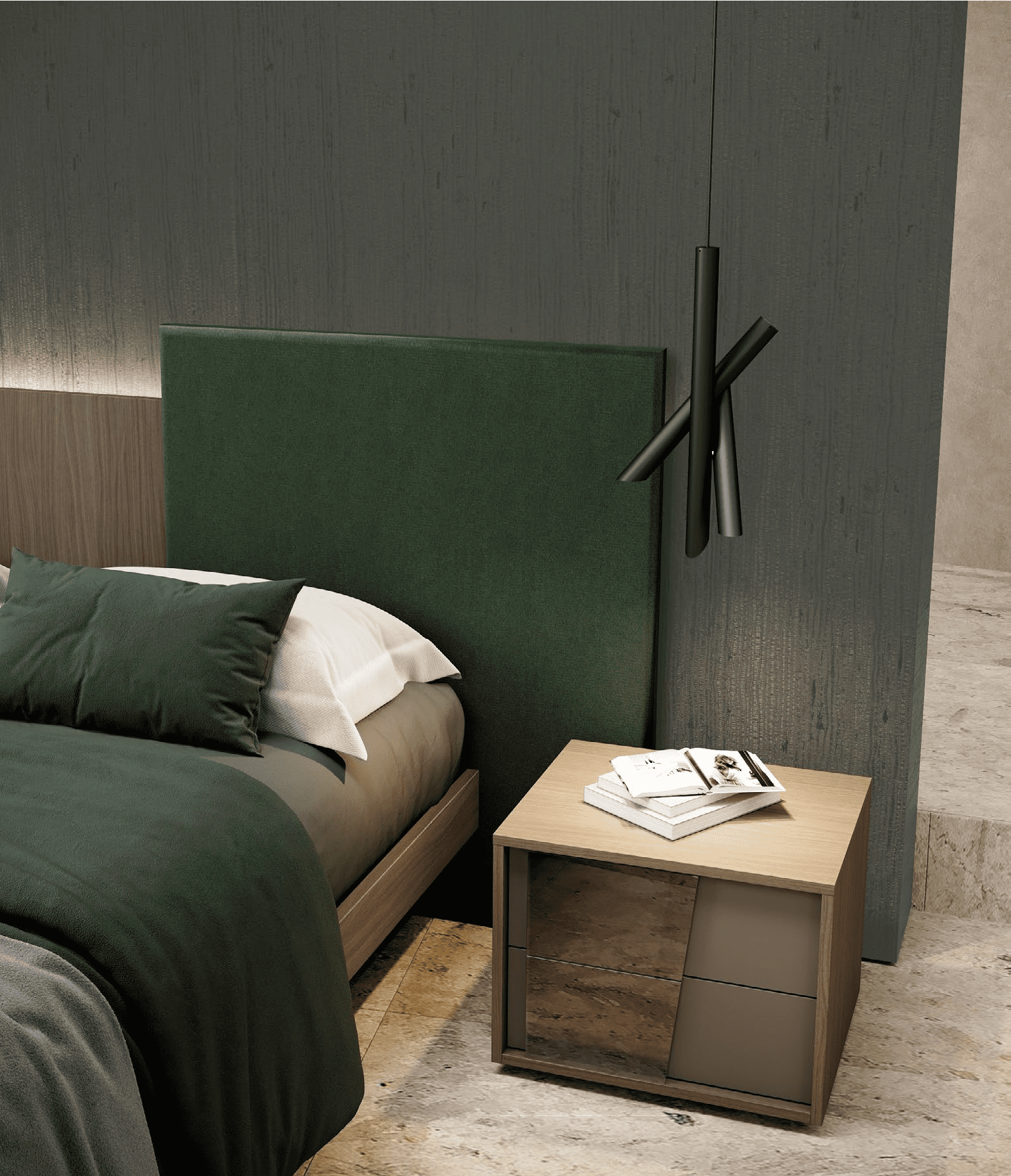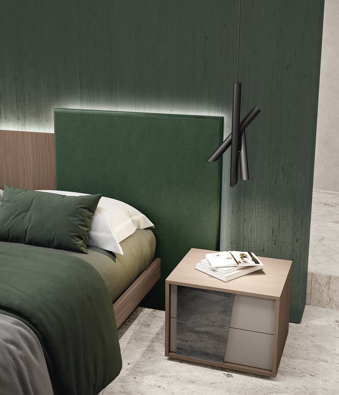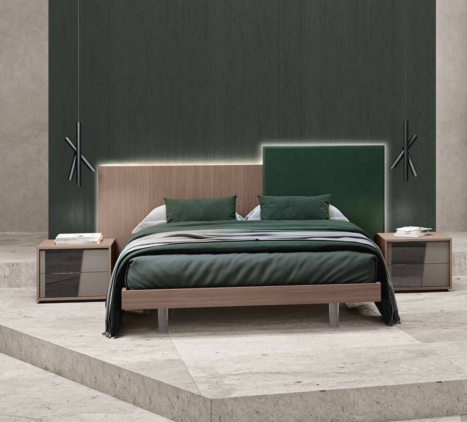 - 01 Letto: Contempo con luci led – nobilitato noce e tessuto jupiter 17