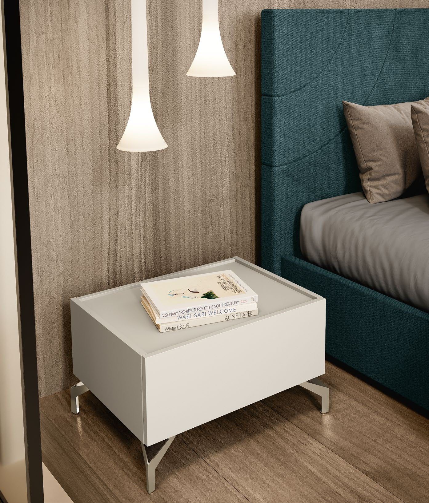 - 02 Comodini: Up – nobilitato grigio e piedini champagne