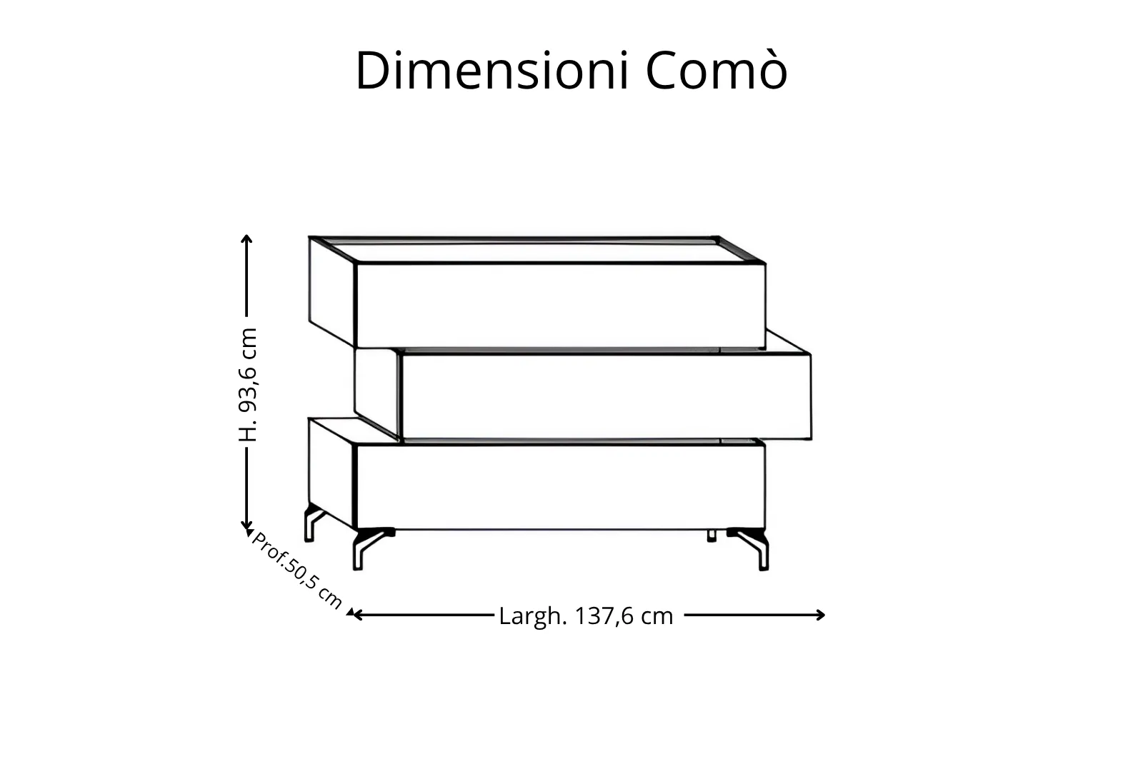 - Comò: L.137,6 – Prof.50,5 – H.93,6 cm
