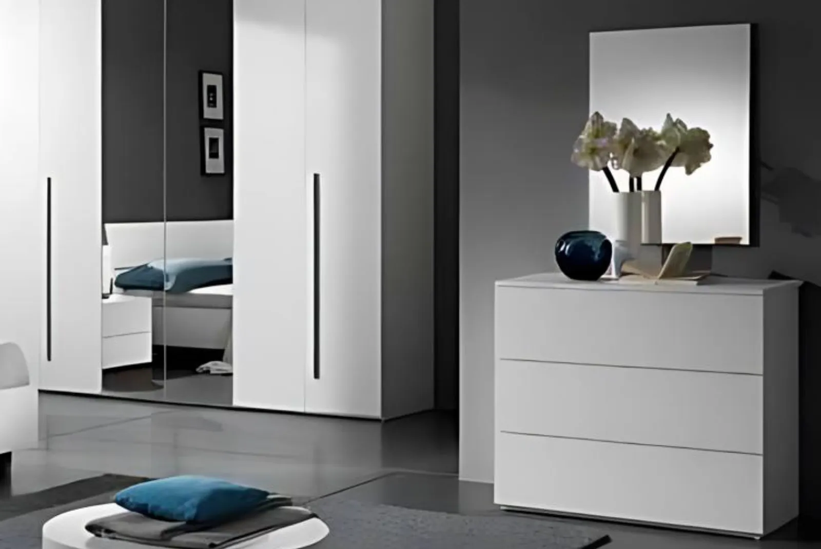 Camera letto Roberta Bianco Battente con specchi esterni è una scelta elegante e raffinata per chi desidera un ambiente accogliente e di stile. Caratterizzata da linee pulite e materiali di alta qualità, disponibile con letto fisso o con contenitore la camera letto Roberta garantisce non solo estetica, ma anche comfort e durata nel tempo.