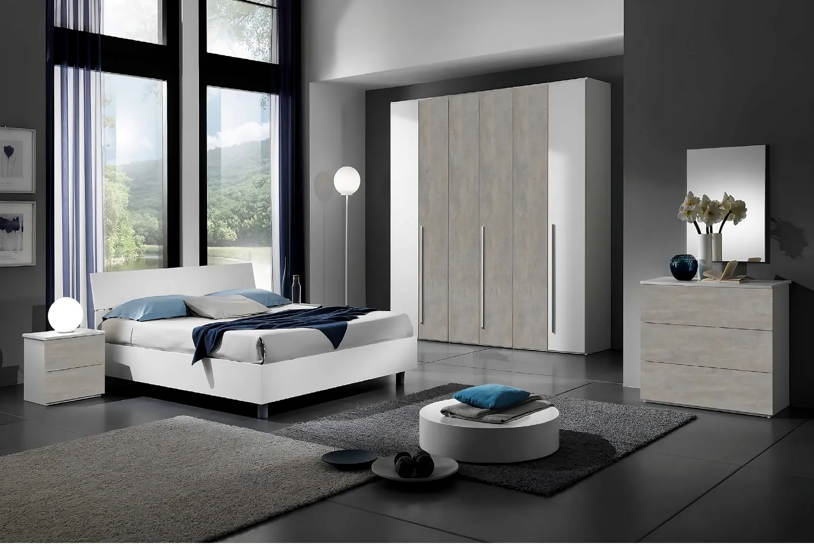 Camera letto Roberta Cemento Battente è una scelta elegante e raffinata per chi desidera un ambiente accogliente e di stile. Caratterizzata da linee pulite e materiali di alta qualità, disponibile con letto fisso o con contenitore la camera letto Roberta garantisce non solo estetica, ma anche comfort e durata nel tempo.