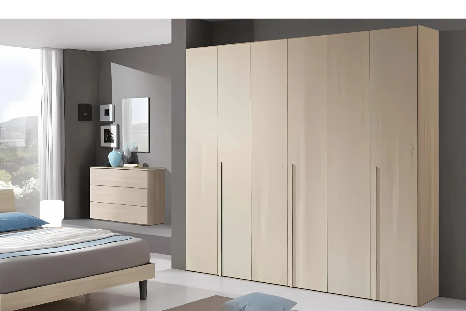 • Armadio 6 ante battenti: Dimensioni L. 240 – P. 52- H. 236cm