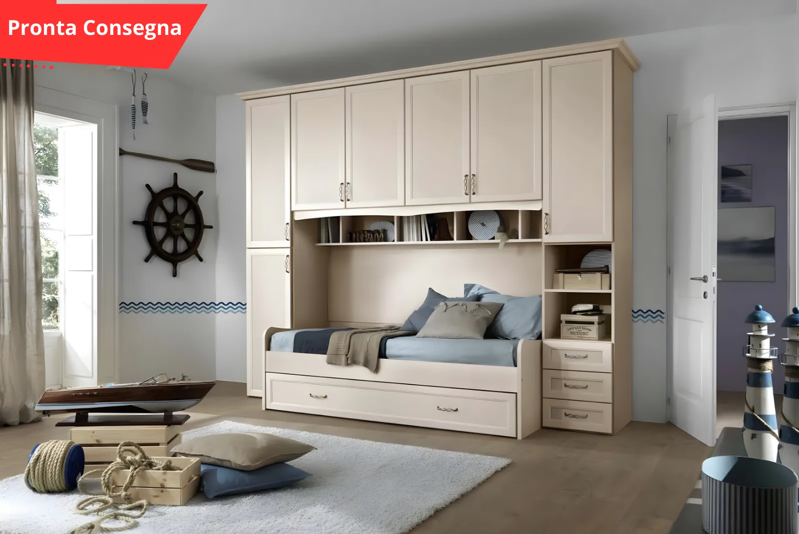 Se stai cercando una cameretta che unisca funzionalità, design moderno e disponibilità immediata, la Cameretta a ponte – Anais è la soluzione ideale per te. Questa cameretta saprà soddisfare sia i genitori che i ragazzi.