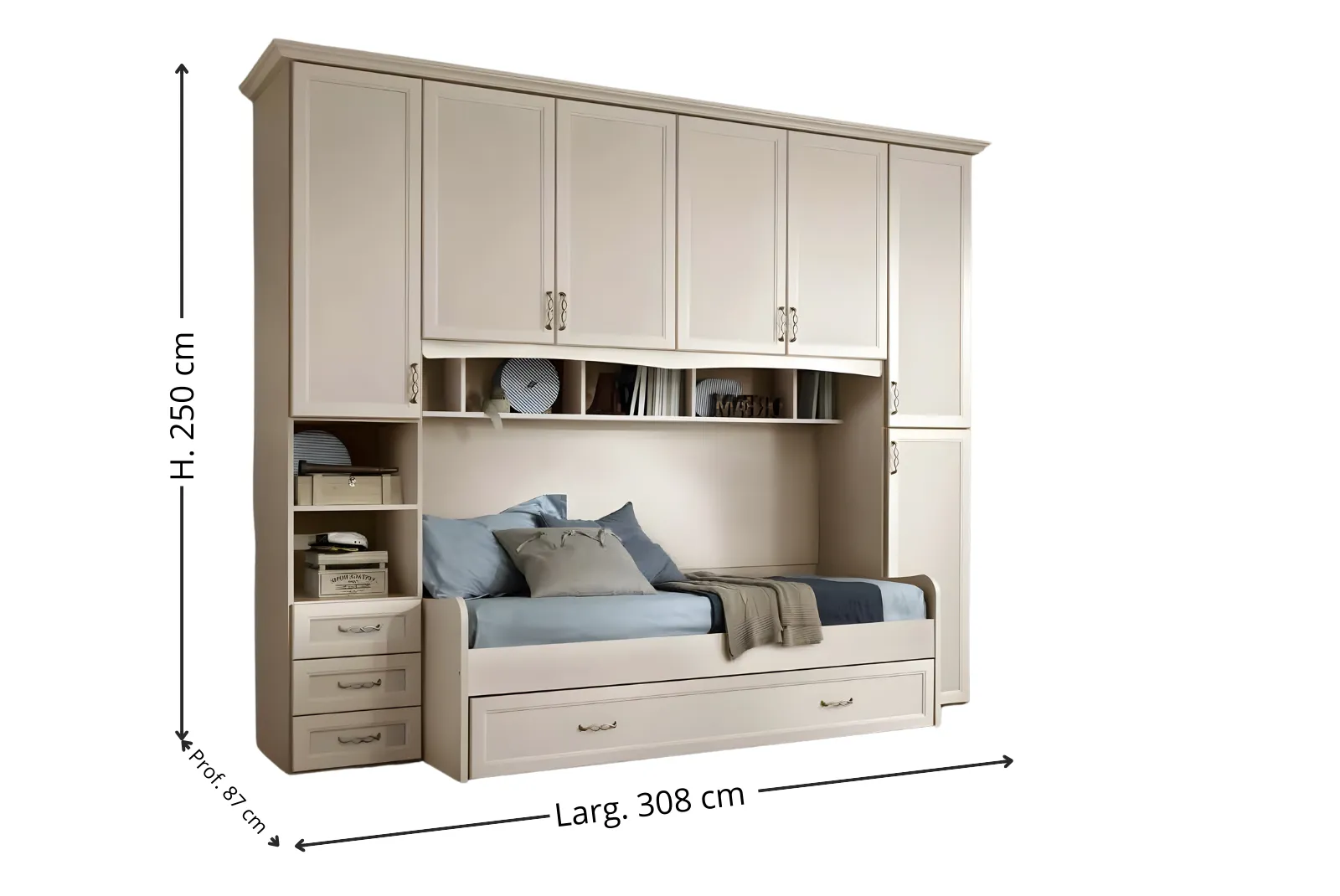 - Dimensioni: Larghezza 308 – Profondità 62 / 87 – Altezza 250 cm