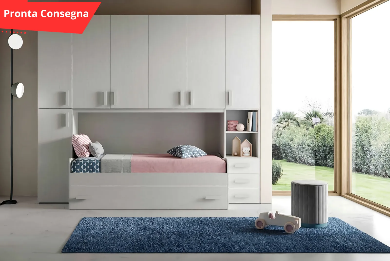 Se stai cercando una cameretta che unisca funzionalità, design moderno e disponibilità immediata, la Cameretta a ponte – Blair è la soluzione ideale per te. Questa cameretta saprà soddisfare sia i genitori che i ragazzi.
