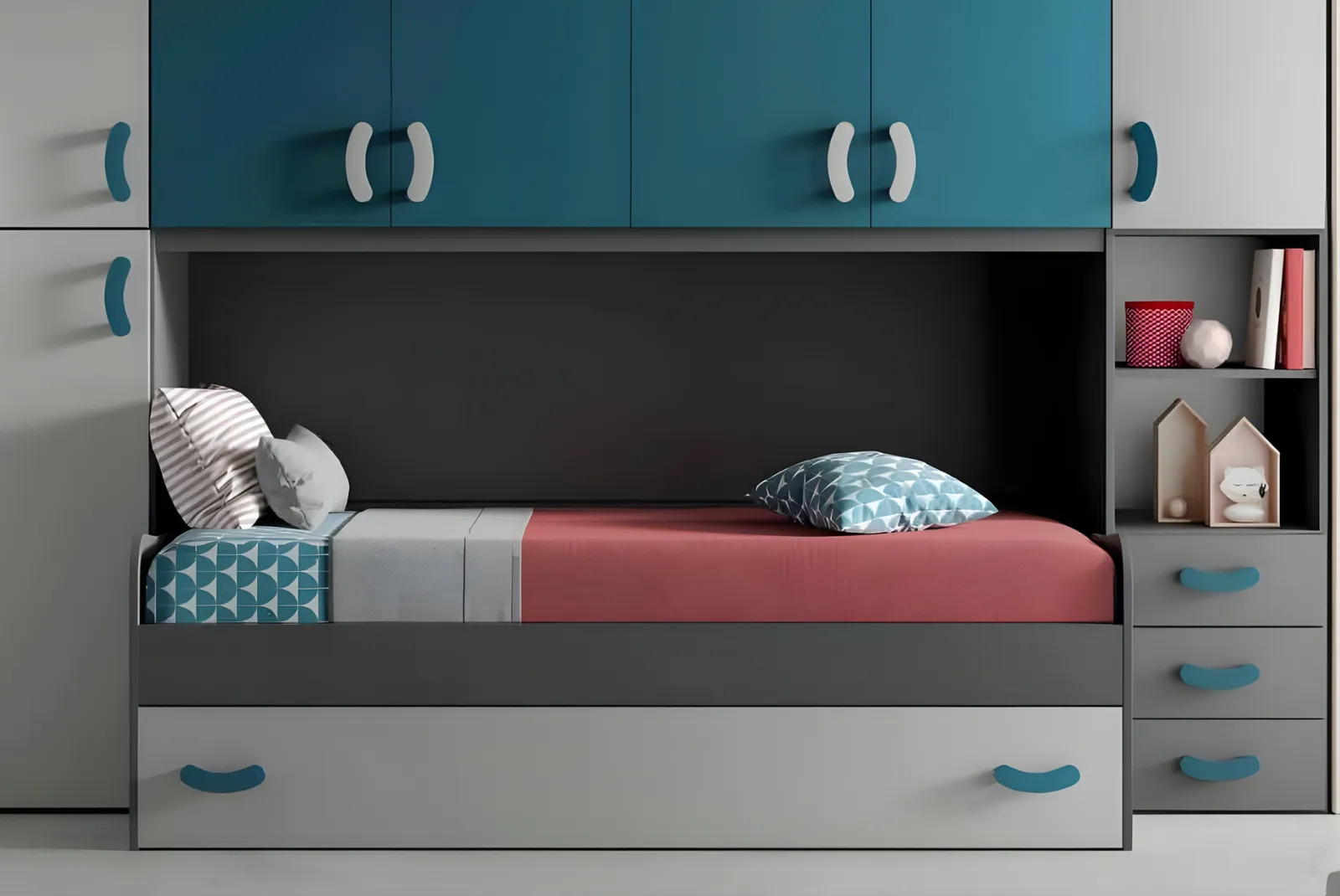 Se stai cercando una cameretta che unisca funzionalità, design moderno e disponibilità immediata, la Cameretta a ponte – Elara è la soluzione ideale per te. Questa cameretta saprà soddisfare sia i genitori che i ragazzi.
