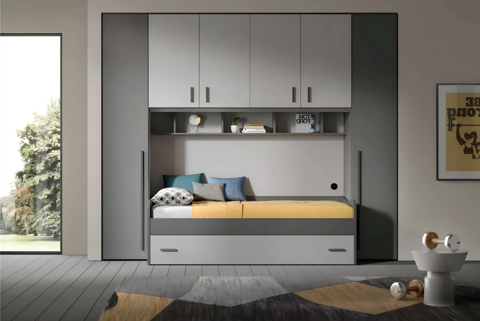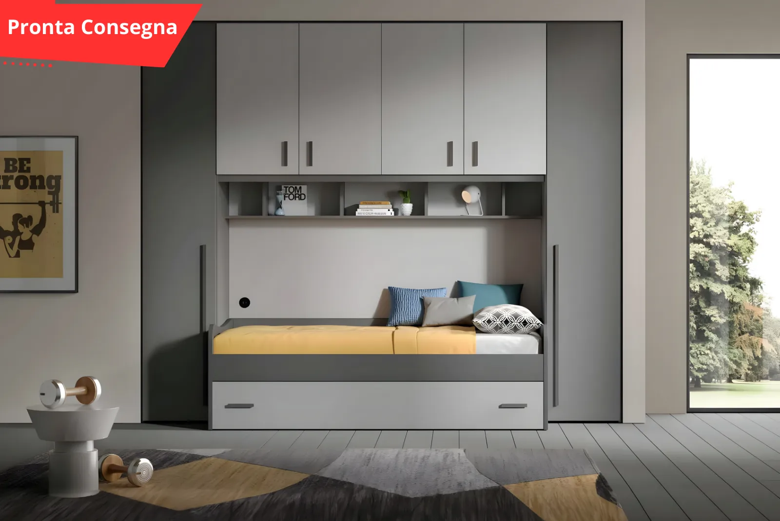 Se stai cercando una cameretta che unisca funzionalità, design moderno e disponibilità immediata, la Cameretta a ponte – Paris è la soluzione ideale per te. Questa cameretta saprà soddisfare sia i genitori che i ragazzi.