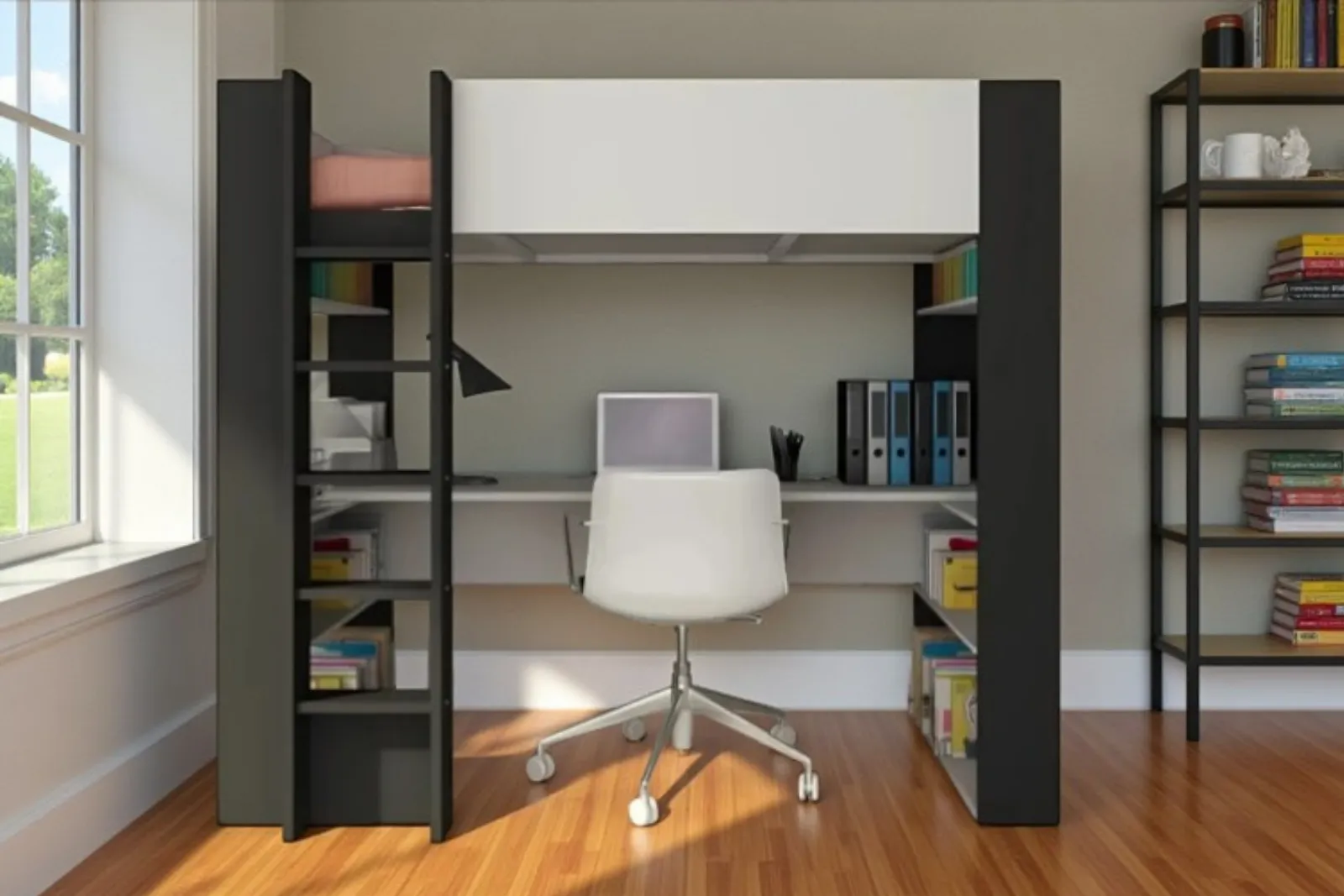 Cameretta con letto a soppalco e scrivania antracite è una soluzione pratica e funzionale, particolarmente adatta per ottimizzare lo spazio in ambienti di dimensioni ridotte.