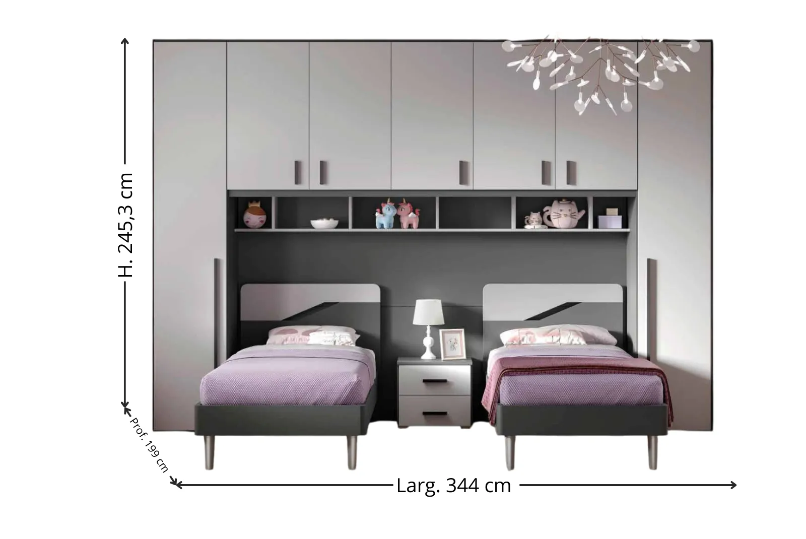 | Dimensioni Cameretta Tyla | Larghezza 344 – Profondità 199 – Altezza 245,3 cm |