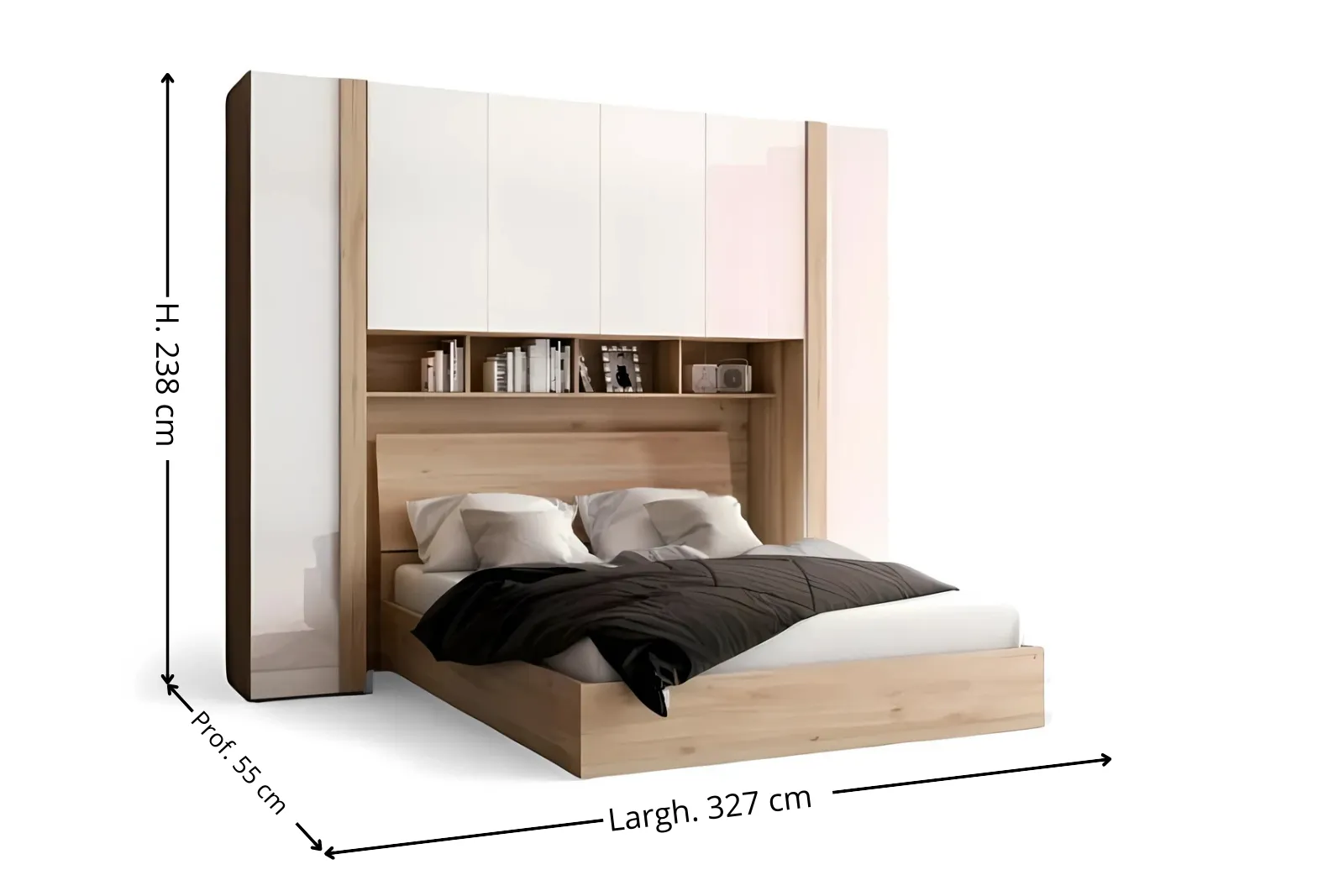 - Misure ingombro: Larghezza 327 cm x Profondità 55 cm – Altezza 238 cm