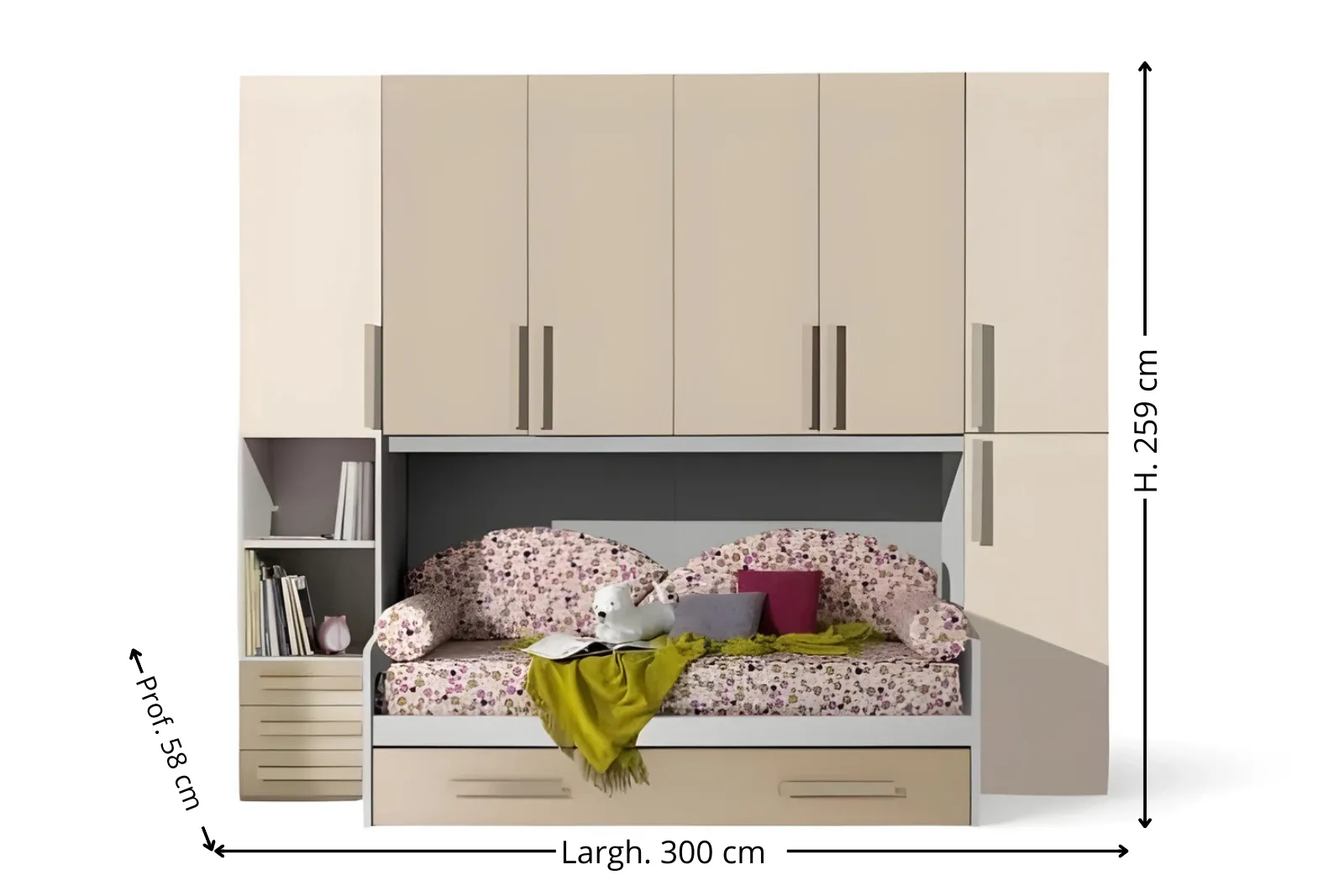 • Dimensione: Larghezza 300 x Profondità 58 – Altezza 259 cm