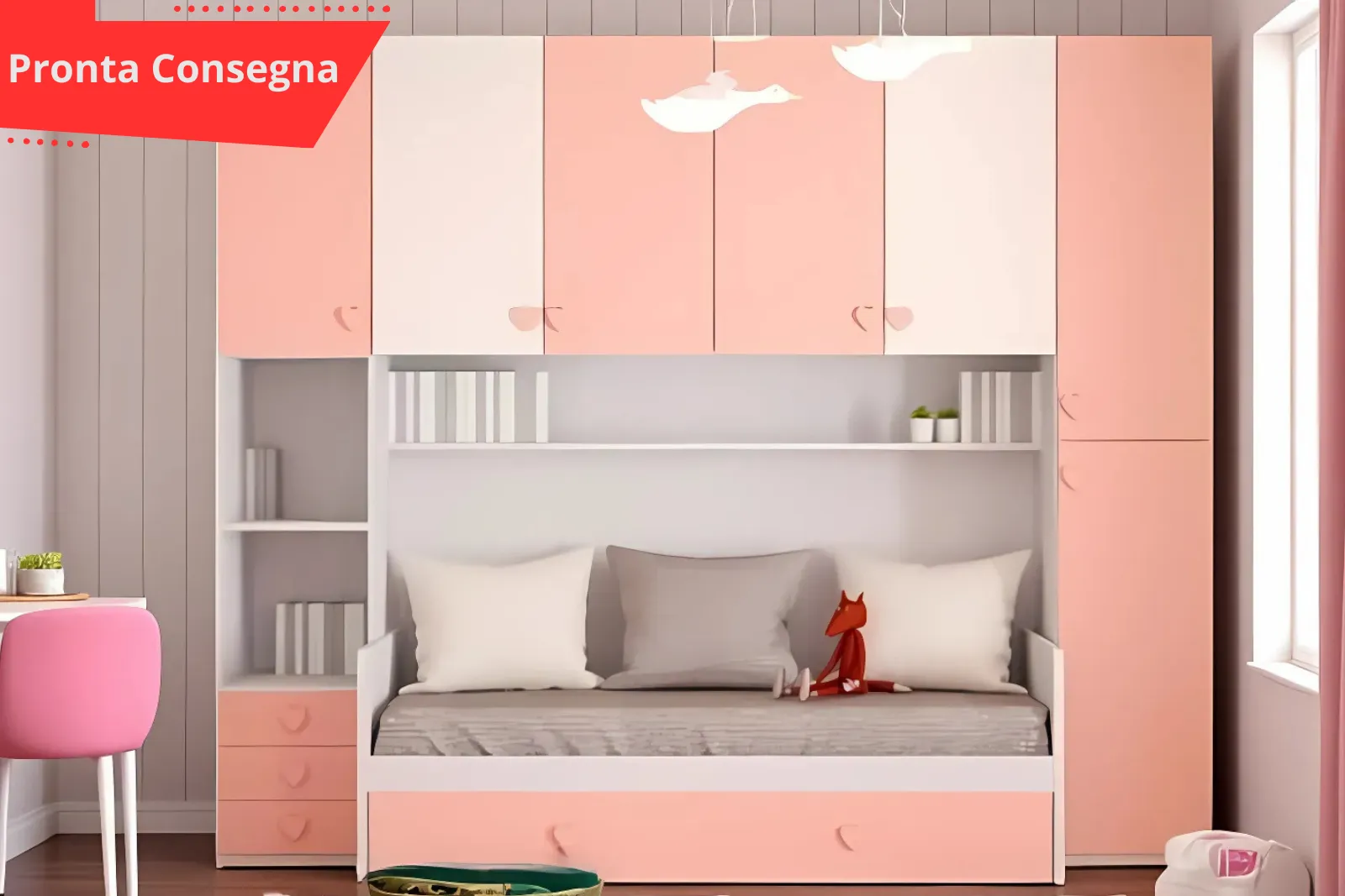 Cameretta – Pink pronta consegna è d’arredo versatile e confortevole che dona un tocco di eleganza a qualsiasi ambiente. Perfetta per la tua camera, questa Cameretta si distingue per il suo design moderno e la sua funzionalità.