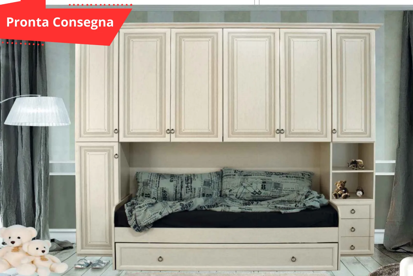 Una cameretta Ponte Avorio Pronta Consegna d’arredo versatile e confortevole che dona un tocco di eleganza a qualsiasi ambiente. Perfetta per la tua camera, questa Cameretta si distingue per il suo design moderno e la sua funzionalità.