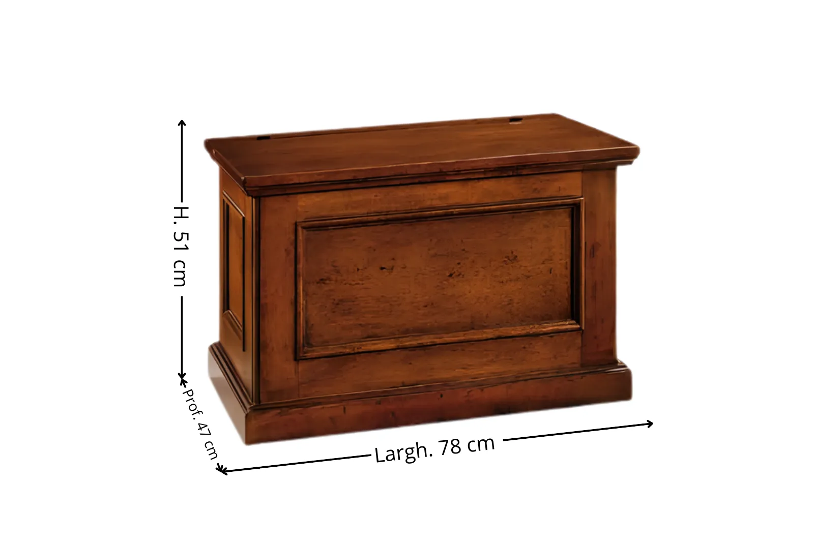 | Dimensioni Cassapanca | Larghezza 78 – Profondità 47 – Altezza 51 cm |