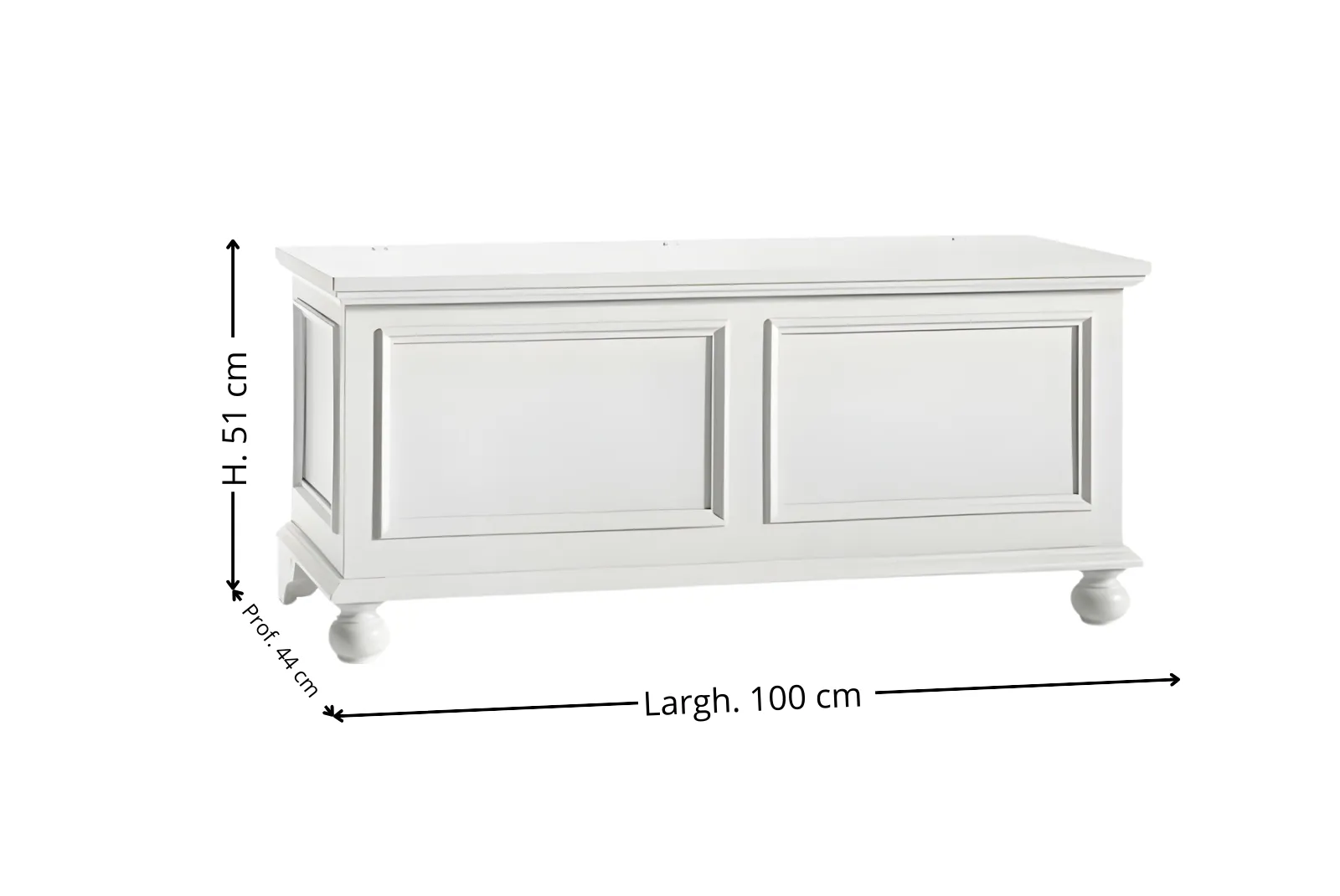 | Dimensioni Cassapanca | Larghezza 100 – Profondità 44 – Altezza 51 cm |