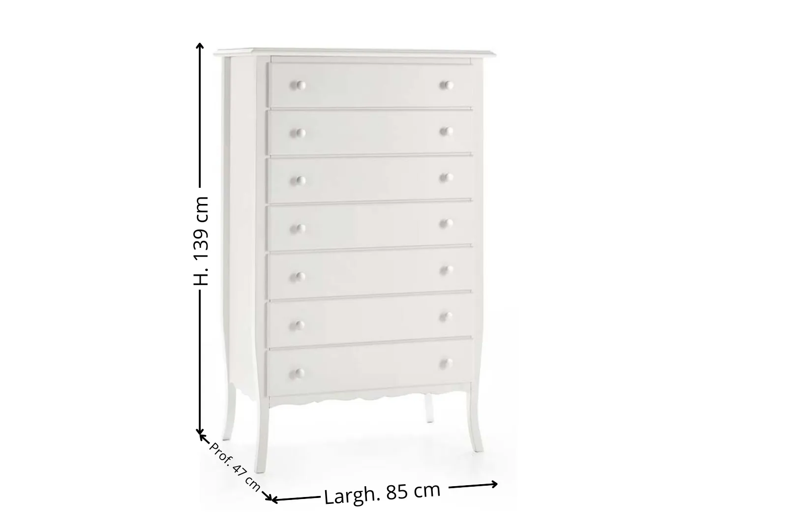 - Modello: Cassettiera 7 cassetti bianca