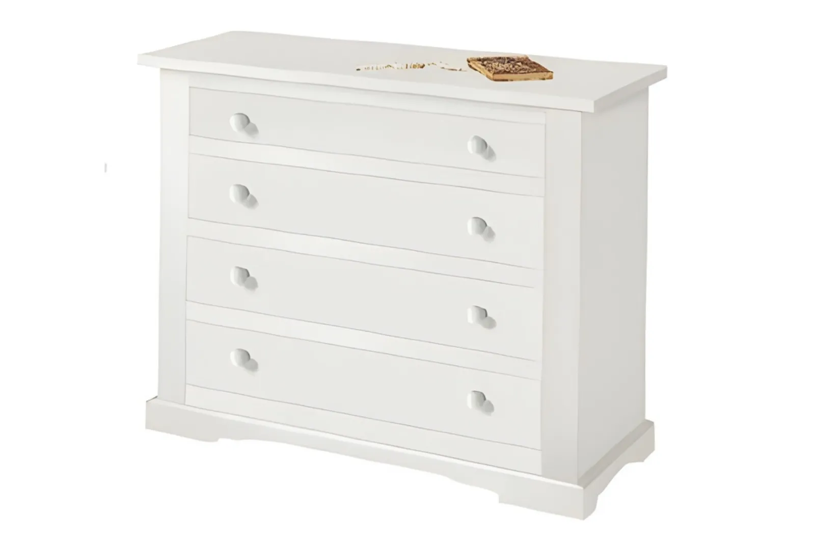 Lasciati avvolgere dal fascino senza tempo dello stile Arte Povera con il Comò 4 cassetti L.115 . Realizzato con finiture in bianco, questo comò è caratterizzato da linee semplici e lavorazioni artigianali. I cassetti spaziosi e le finiture naturali rendono il Comò perfetto per chi cerca un arredamento autentico e funzionale.