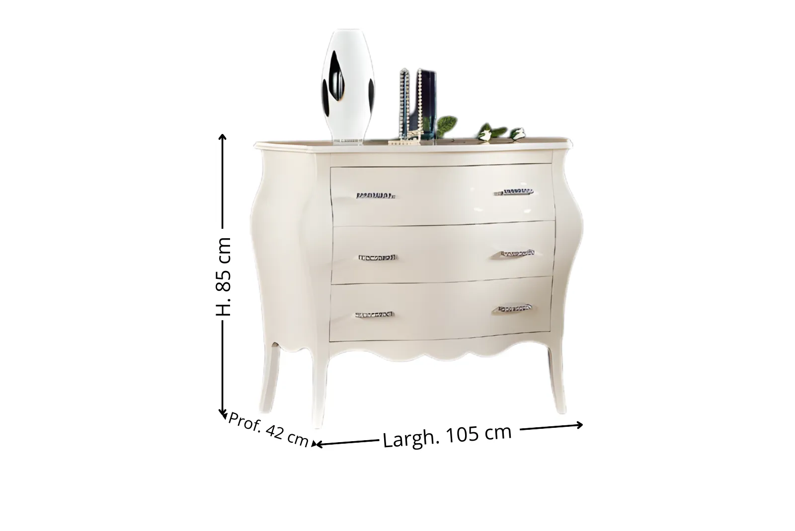 | Dimensione Comò | Larghezza 105 – Profondità 42 – Altezza 85 cm |