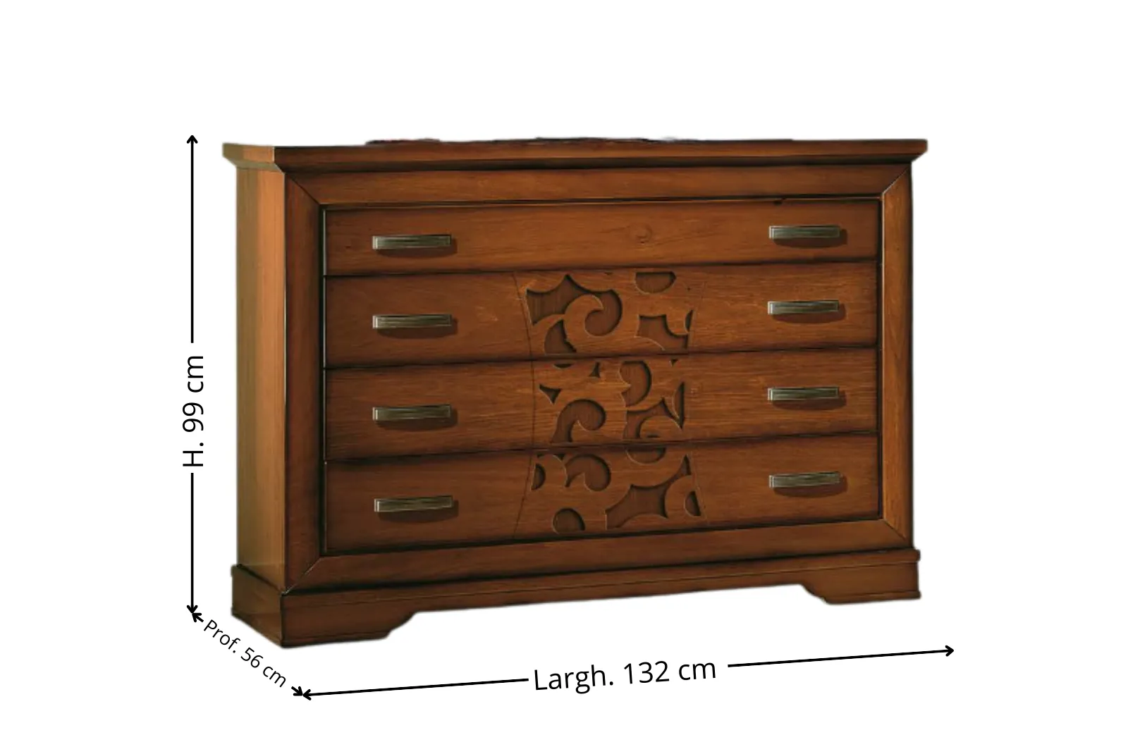 Lasciati avvolgere dal fascino senza tempo dello stile Arte Povera con il Comò Finitura Bassano con decoro a rilievo. Realizzato con finitura Bassano, questo comò è caratterizzato da linee semplici e lavorazioni artigianali. I cassetti spaziosi e le finiture naturali rendono un set perfetto per chi cerca un arredamento autentico e funzionale. Non perdere questa occasione acquista questo comò per arredare il tuo ambiente con stile e funzionalità.